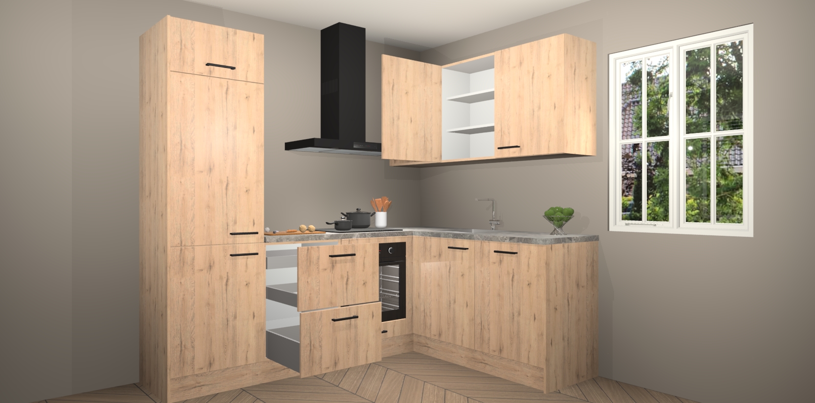 Bestellen was nog nooit zo makkelijk en we leveren met slechts 7 weken; zodra de keuken arriveert staan de kasten voor gemonteerd klaar om er alles aan te doen dat u hem gemakkelijk zelf kunt installeren! Eén ding is zeker: met de Madera Natuur keuken Krakau slaagt u erin modischer, modernere keukens uit te rusten die tientallen jaren meegaan! Haal snel uw Madera Natuur keuken Krakau - of u nu net begint of al 'levenservaring' hebt in de keukendroomloopbaan - want dit topmodel van onze collectie wilt u absoluut niet missen.