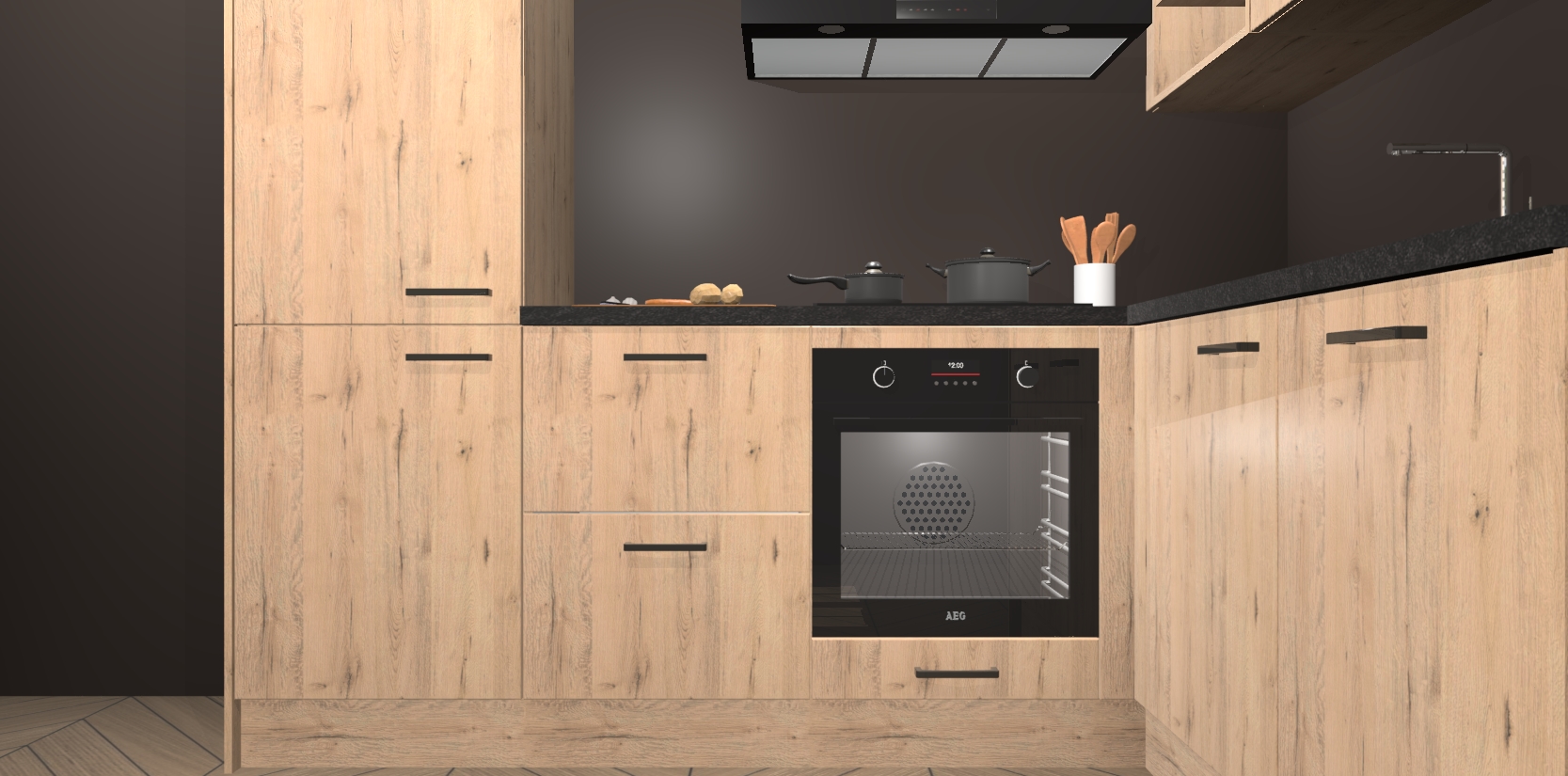 Dit model biedt u voldoende opbergruimte en vijf ingebouwde apparaten: een oven, inductiekookplaat, afzuigkap, vaatwasser en koelkast. Deze apparaten kunnen gemakkelijk worden geüpgrade naar AEG nadat u besteld heeft. De verschillende laden en kastjes bevatten softclose-deuren waardoor ze gezellig dichtvallen met een geruststellend helemaal geruisloos geluid. En dat is nog niet alles! We garanderen ook dat de prijs altijd laag blijft - dus haal nu uw Madera Natuur keuken Krakau terwijl het kan.