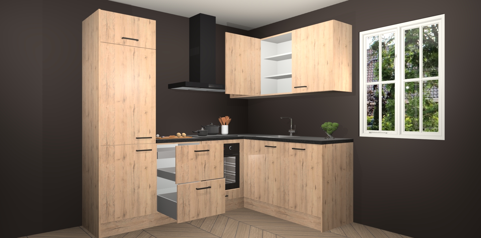 Bestellen was nog nooit zo makkelijk en we leveren met slechts 7 weken; zodra de keuken arriveert staan de kasten voor gemonteerd klaar om er alles aan te doen dat u hem gemakkelijk zelf kunt installeren! Eén ding is zeker: met de Madera Natuur keuken Krakau slaagt u erin modischer, modernere keukens uit te rusten die tientallen jaren meegaan! Haal snel uw Madera Natuur keuken Krakau - of u nu net begint of al 'levenservaring' hebt in de keukendroomloopbaan - want dit topmodel van onze collectie wilt u absoluut niet missen.