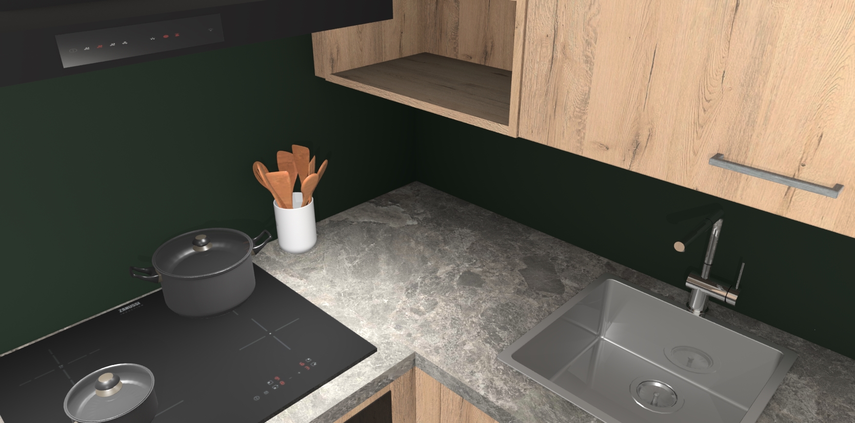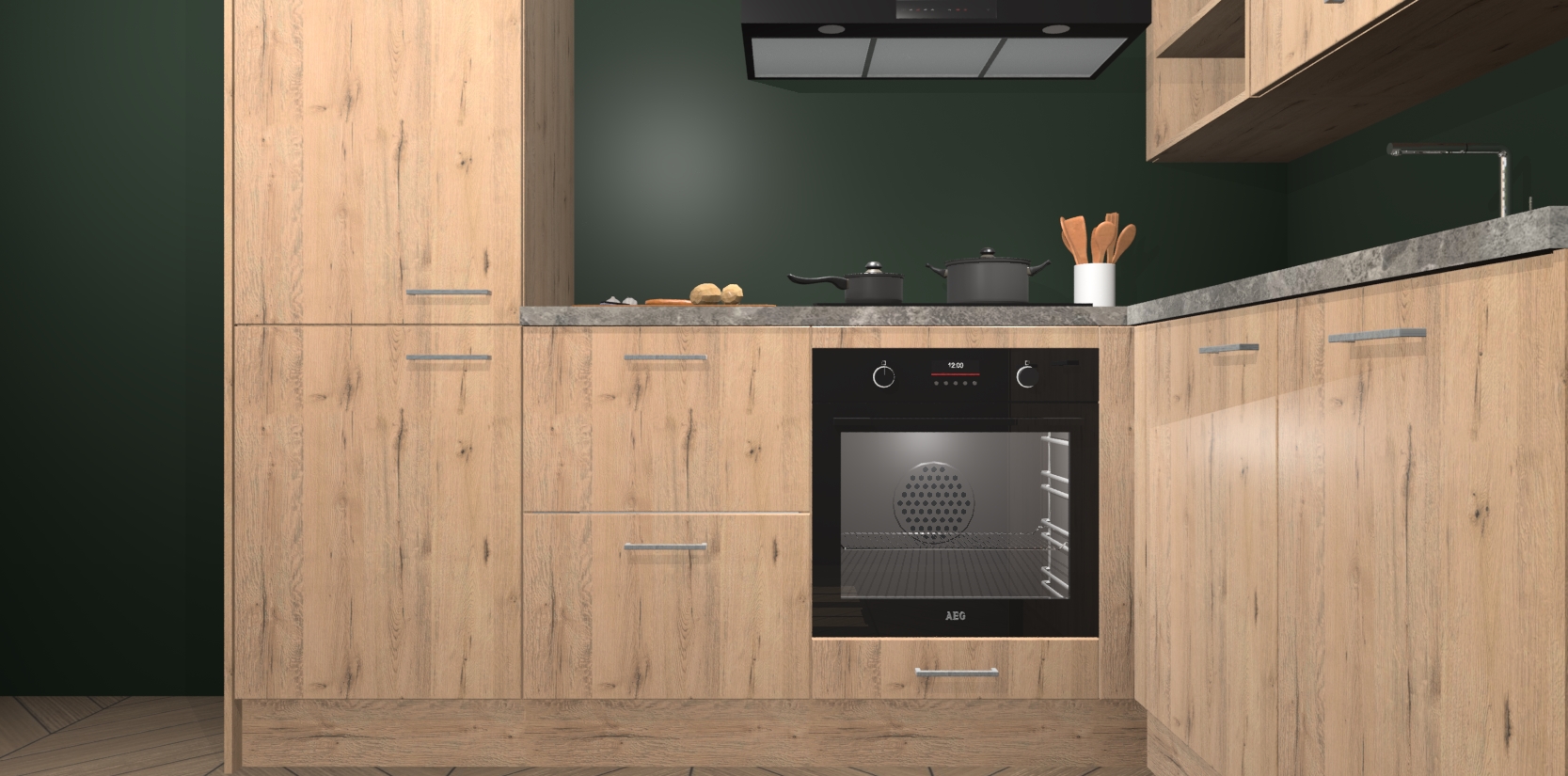 Dit model biedt u voldoende opbergruimte en vijf ingebouwde apparaten: een oven, inductiekookplaat, afzuigkap, vaatwasser en koelkast. Deze apparaten kunnen gemakkelijk worden geüpgrade naar AEG nadat u besteld heeft. De verschillende laden en kastjes bevatten softclose-deuren waardoor ze gezellig dichtvallen met een geruststellend helemaal geruisloos geluid. En dat is nog niet alles! We garanderen ook dat de prijs altijd laag blijft - dus haal nu uw Madera natuur keuken Krakau terwijl het kan.
