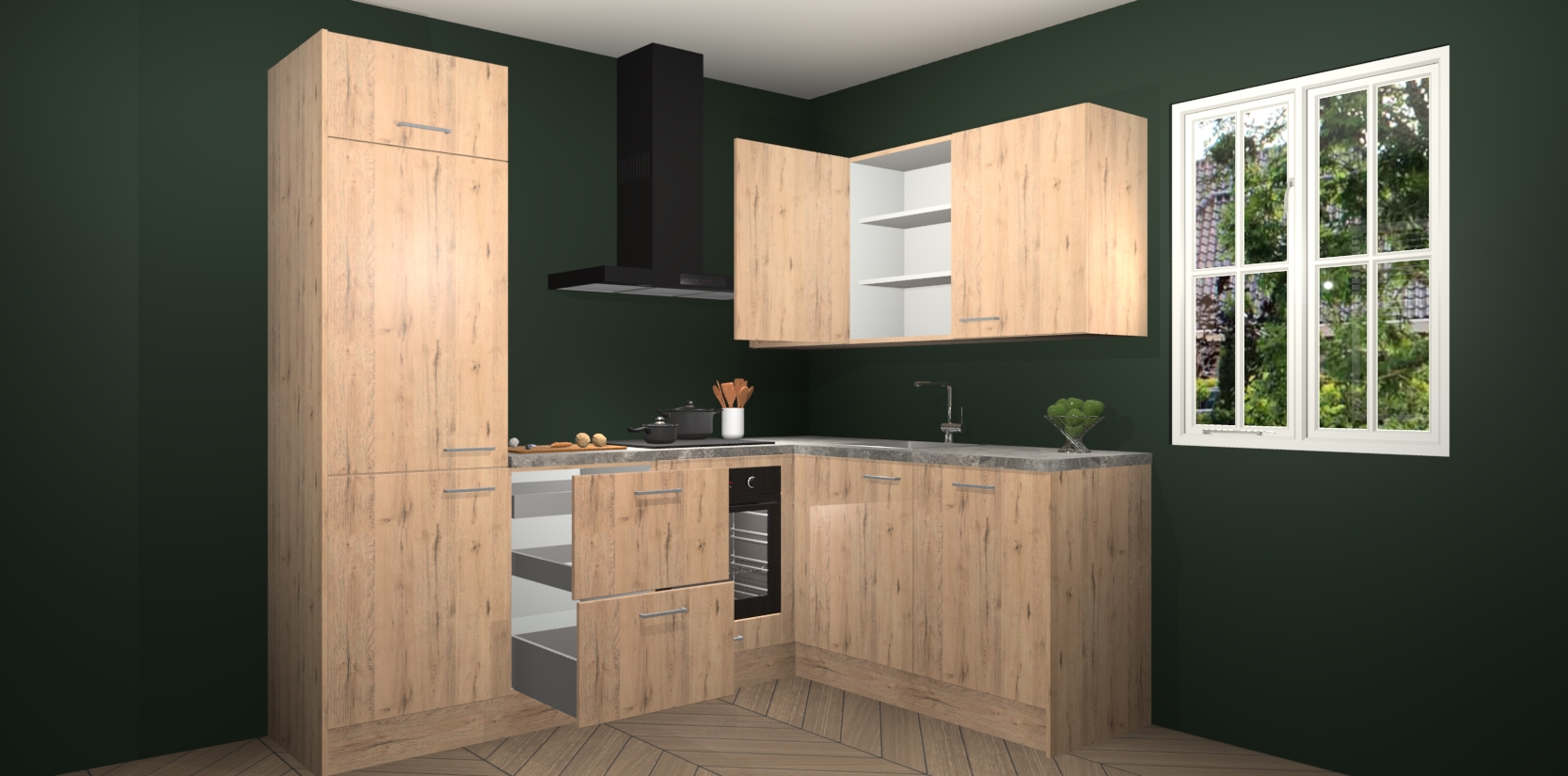 Bestellen was nog nooit zo makkelijk en we leveren met slechts 7 weken; zodra de keuken arriveert staan de kasten voor gemonteerd klaar om er alles aan te doen dat u hem gemakkelijk zelf kunt installeren! Eén ding is zeker: met de Madera natuur keuken Krakau slaagt u erin modischer, modernere keukens uit te rusten die tientallen jaren meegaan! Haal snel uw Madera natuur keuken Krakau - of u nu net begint of al 'levenservaring' hebt in de keukendroomloopbaan - want dit topmodel van onze collectie wilt u absoluut niet missen.