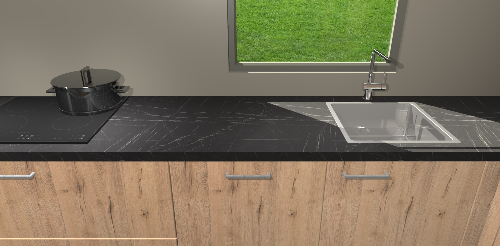 • Bij een hoekwerkblad zijn de hoeken in gevreesd en op maat gemaakt