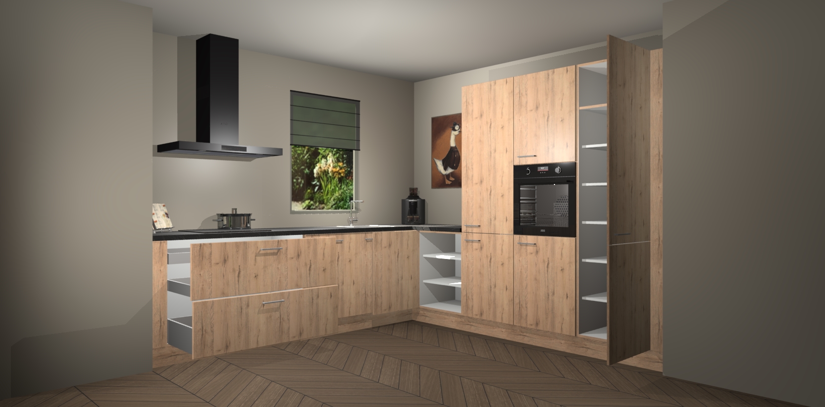 Welkom bij de Madera Natuur keuken Laos. Deze prachtige keuken zal de komende jaren het middelpunt van de belangstelling in uw huis zijn. Uitgerust met vijf inbouwapparaten komt u nooit kookgereedschap tekort. Bovendien geeft de warme houtlook elke ruimte een uitnodigende en tijdloze uitstraling.