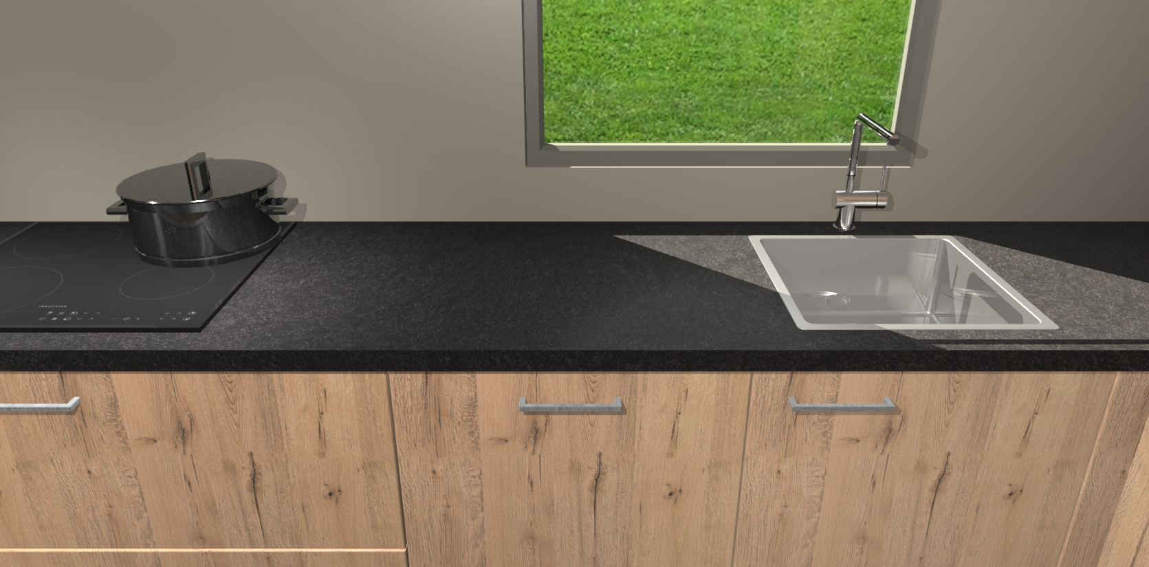 - Bij een hoekwerkblad zijn de hoeken in gevreesd en op maat gemaakt