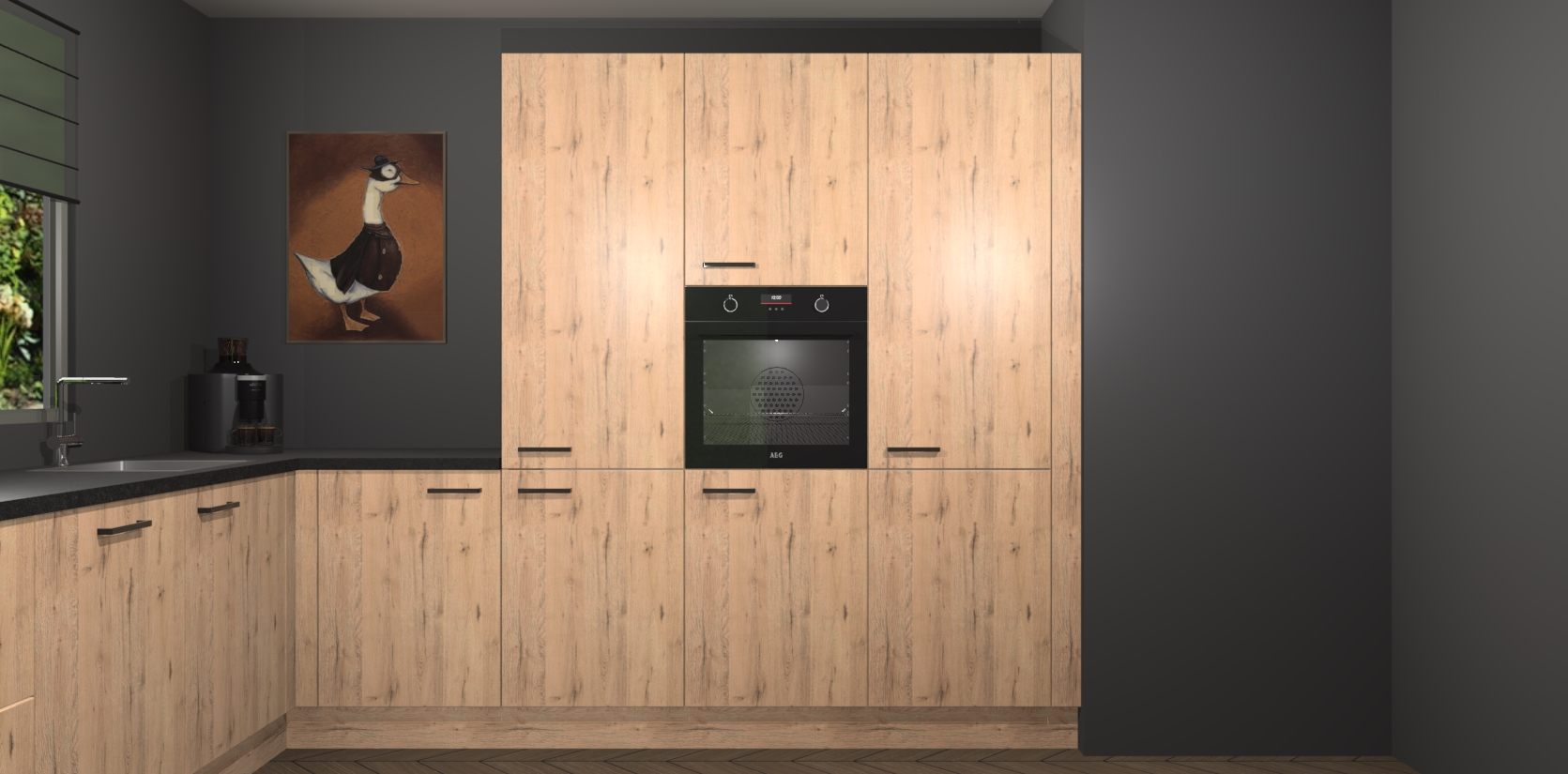 Welkom bij de Madera Natuur keuken Laos. Deze prachtige keuken zal de komende jaren het middelpunt van de belangstelling in uw huis zijn. Uitgerust met vijf inbouwapparaten komt u nooit kookgereedschap tekort. Bovendien geeft de warme houtlook elke ruimte een uitnodigende en tijdloze uitstraling.