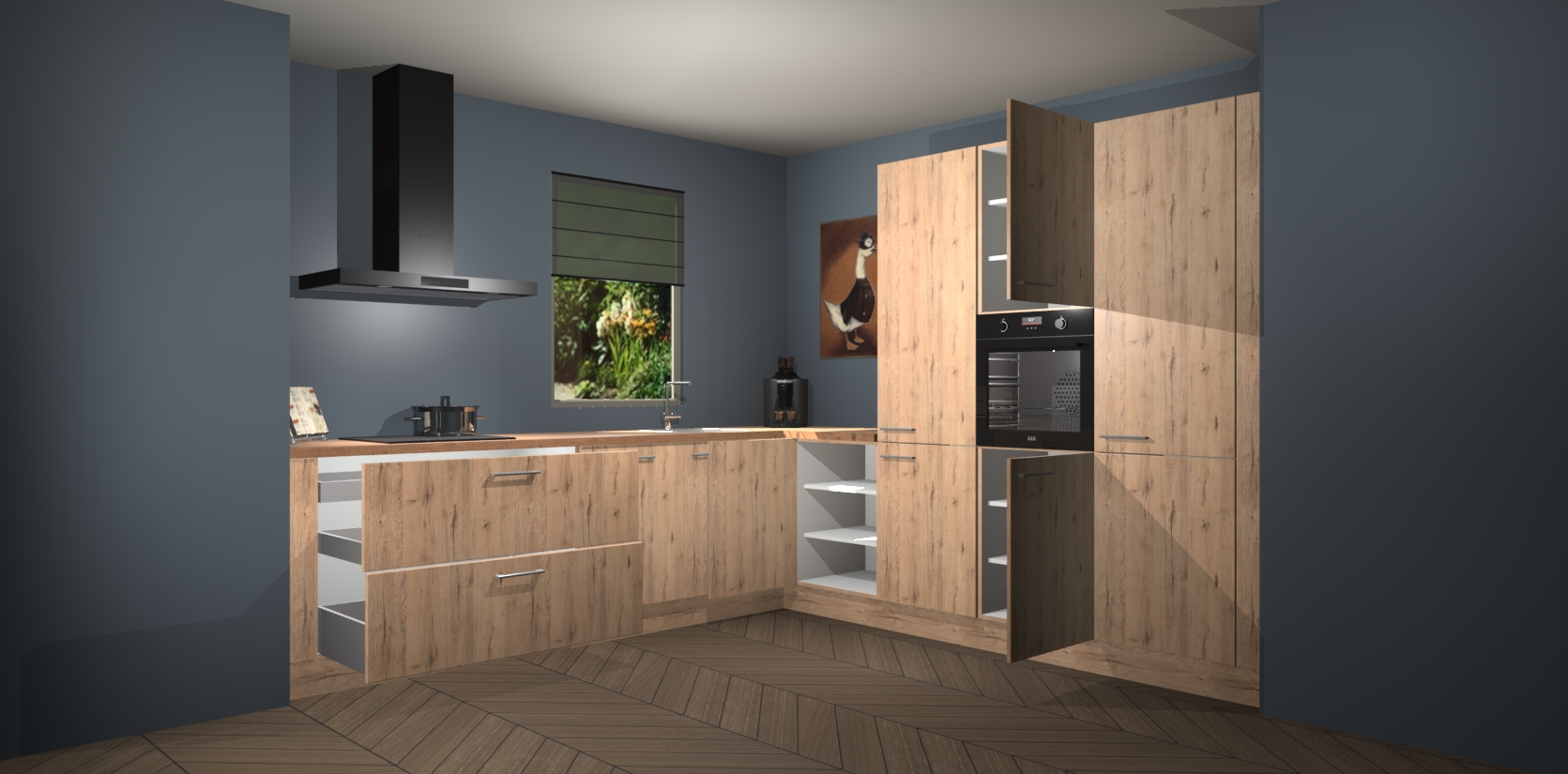 Welkom bij de Madera Natuur keuken Laos. Deze prachtige keuken zal de komende jaren het middelpunt van de belangstelling in uw huis zijn. Uitgerust met vijf inbouwapparaten komt u nooit kookgereedschap tekort. Bovendien geeft de warme houtlook elke ruimte een uitnodigende en tijdloze uitstraling.