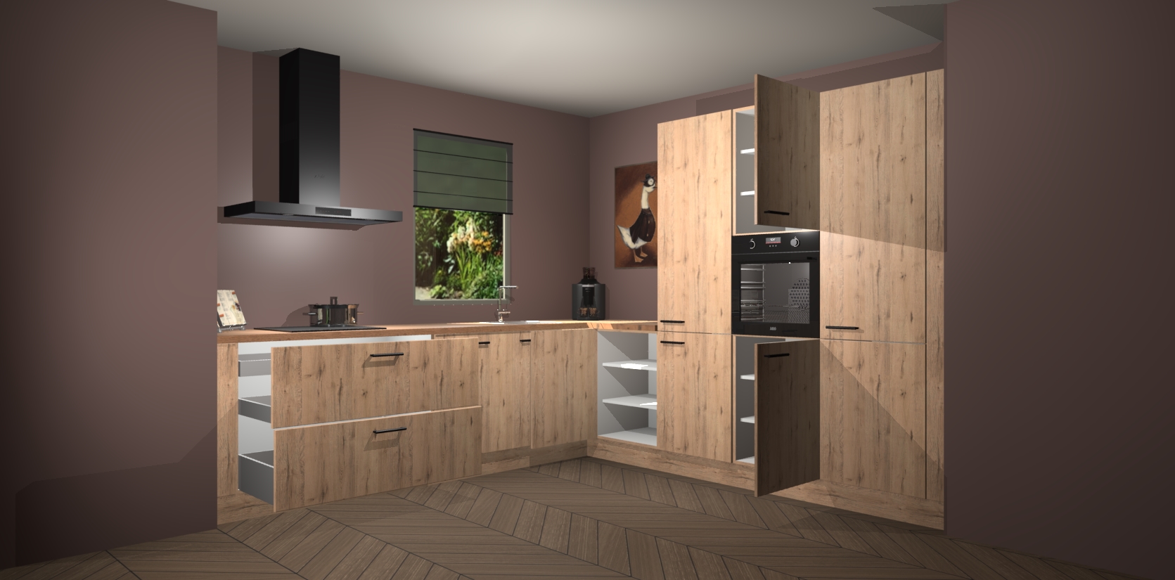 Welkom bij de Madera Natuur keuken Laos. Deze prachtige keuken zal de komende jaren het middelpunt van de belangstelling in uw huis zijn. Uitgerust met vijf inbouwapparaten komt u nooit kookgereedschap tekort. Bovendien geeft de warme houtlook elke ruimte een uitnodigende en tijdloze uitstraling.