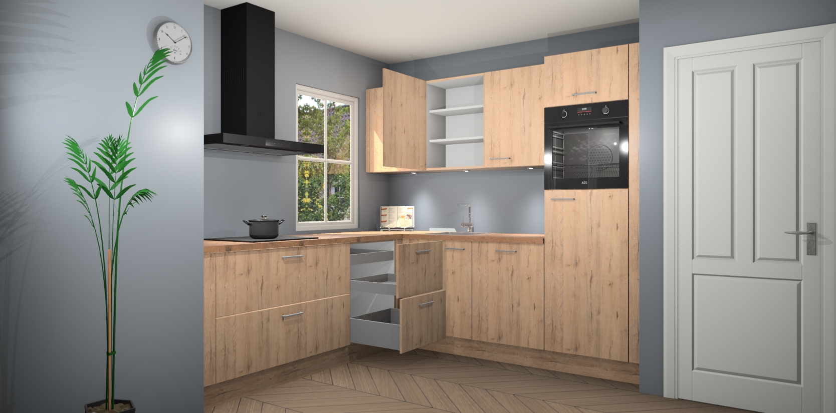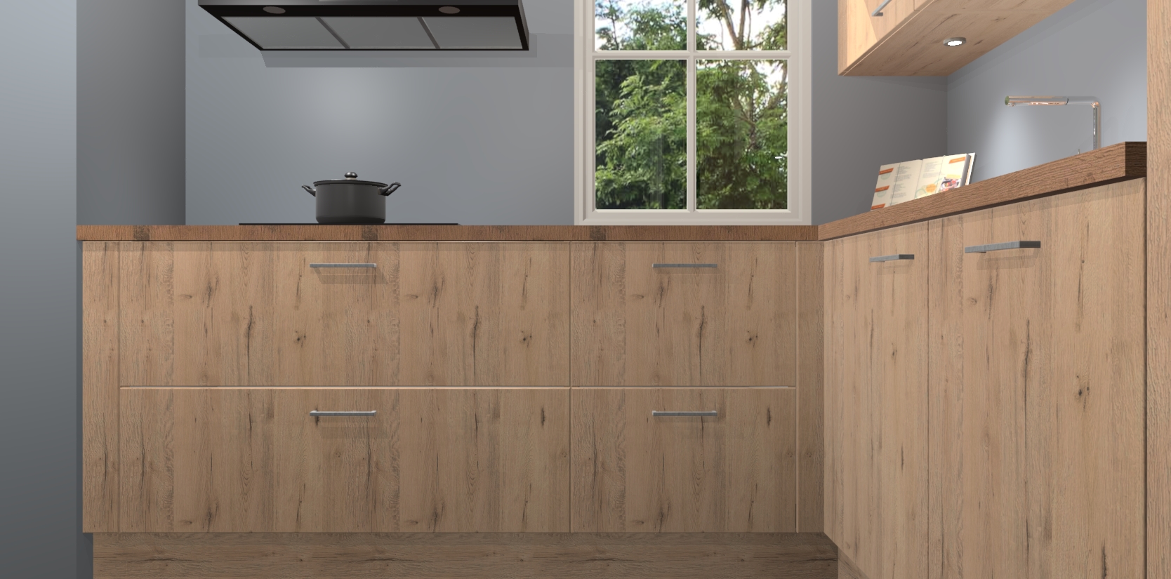 De madera natuur keuken Leeds bevat vijf essentiële inbouwapparaten - een oven, inductiekookplaat, afzuigkap, vaatwasser en koelkast - zodat u er na levering meteen in kunt. Voor de slimme kopers die weten dat apparaten vaak het verschil kunnen maken tussen functioneel en luxueus, bieden we eenvoudige upgradeopties naar AEG, van oven naar combimagnetron na bestelling of naar een kookplaat met geïntrigeerde afzuiging. En met onze vaste lage prijs en snelle levering binnen zeven weken vanaf de orderbevestiging hoeft u zich geen zorgen te maken over verborgen kosten of lange levertijden die uw droomkeuken kunnen vertragen.