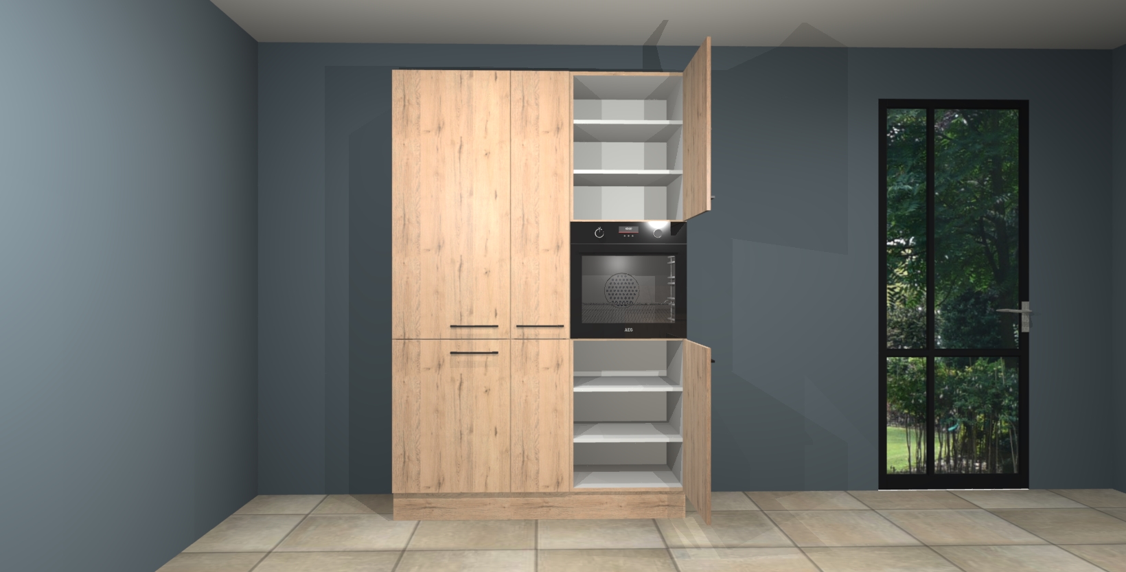 Met een modern, tijdloos design en ruime opslagruimte, zult u zich in no-time thuis voelen in uw nieuwe keuken. Uw leven wordt eenvoudiger met de soft-close deuren die voor het ultieme stille comfort zorgen - geen geluid dat u stoort terwijl u kookt. Ook is de keuken voorzien van 5 ingebouwde apparaten: een oven, inductie kookplaat, afzuigkap, vaatwasser en koelkast. Deze kunnen gemakkelijk na bestelling worden bijgewerkt naar AEG - waardoor uw luxe ervaring compleet is.