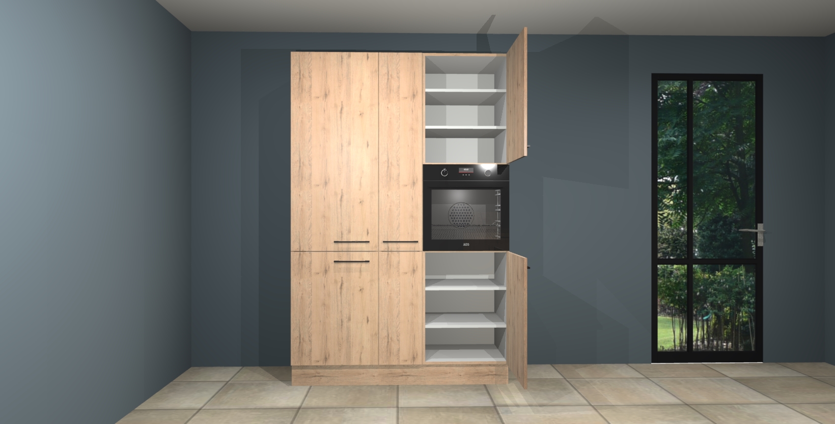 Met een modern, tijdloos design en ruime opslagruimte, zult u zich in no-time thuis voelen in uw nieuwe keuken. Uw leven wordt eenvoudiger met de soft-close deuren die voor het ultieme stille comfort zorgen - geen geluid dat u stoort terwijl u kookt. Ook is de keuken voorzien van 5 ingebouwde apparaten: een oven, inductie kookplaat, afzuigkap, vaatwasser en koelkast. Deze kunnen gemakkelijk na bestelling worden bijgewerkt naar AEG - waardoor uw luxe ervaring compleet is.