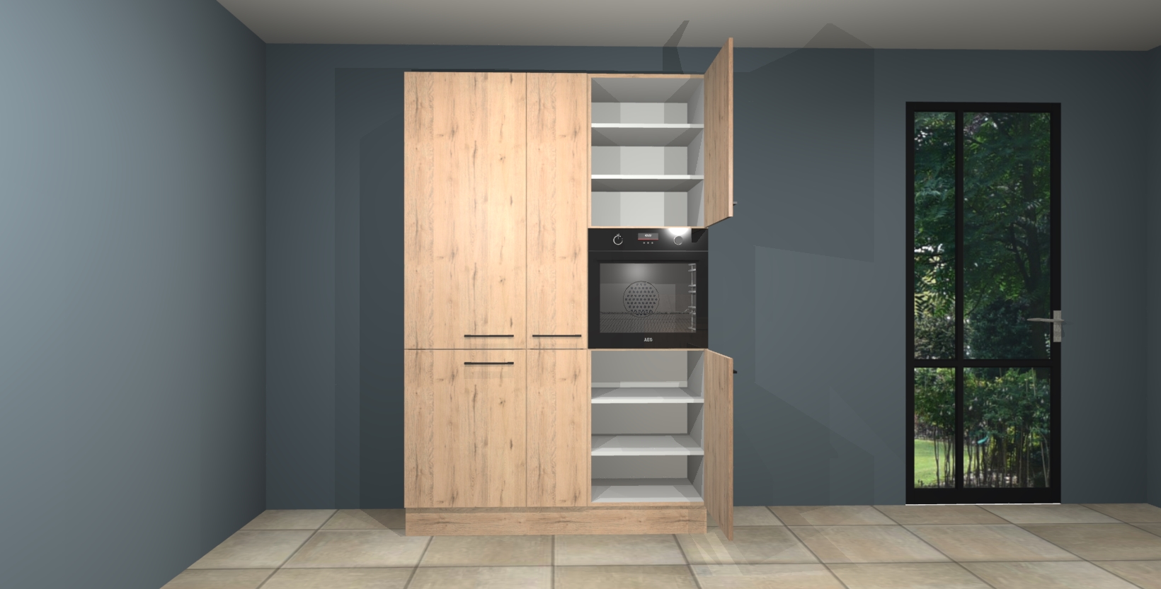 Met een modern, tijdloos design en ruime opslagruimte, zult u zich in no-time thuis voelen in uw nieuwe keuken. Uw leven wordt eenvoudiger met de soft-close deuren die voor het ultieme stille comfort zorgen - geen geluid dat u stoort terwijl u kookt. Ook is de keuken voorzien van 5 ingebouwde apparaten: een oven, inductie kookplaat, afzuigkap, vaatwasser en koelkast. Deze kunnen gemakkelijk na bestelling worden bijgewerkt naar AEG - waardoor uw luxe ervaring compleet is.