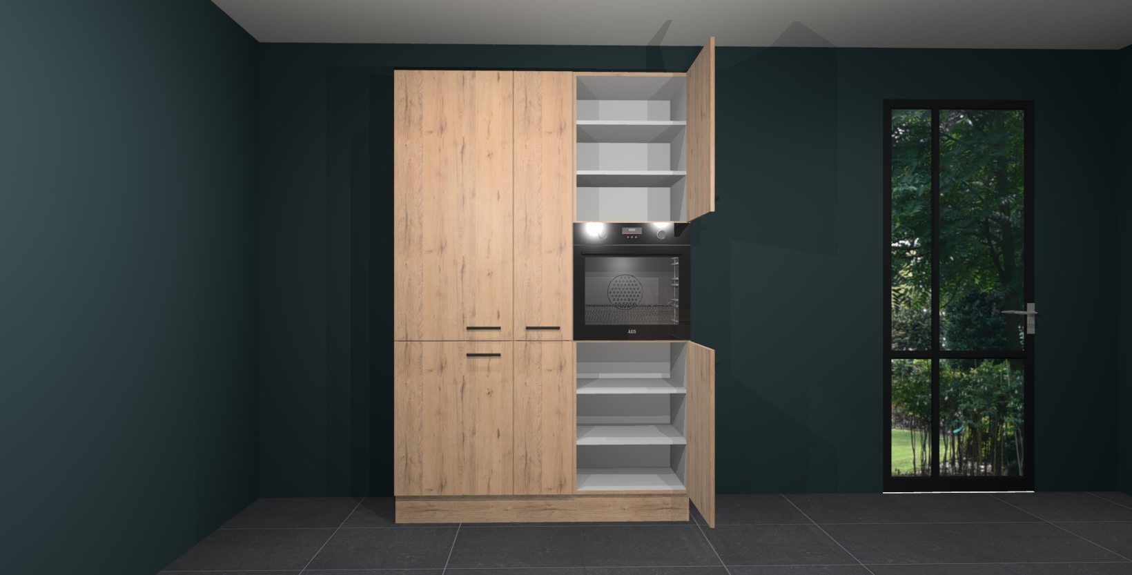 Met een modern, tijdloos design en ruime opslagruimte, zult u zich in no-time thuis voelen in uw nieuwe keuken. Uw leven wordt eenvoudiger met de soft-close deuren die voor het ultieme stille comfort zorgen - geen geluid dat u stoort terwijl u kookt. Ook is de keuken voorzien van 5 ingebouwde apparaten: een oven, inductie kookplaat, afzuigkap, vaatwasser en koelkast. Deze kunnen gemakkelijk na bestelling worden bijgewerkt naar AEG - waardoor uw luxe ervaring compleet is.