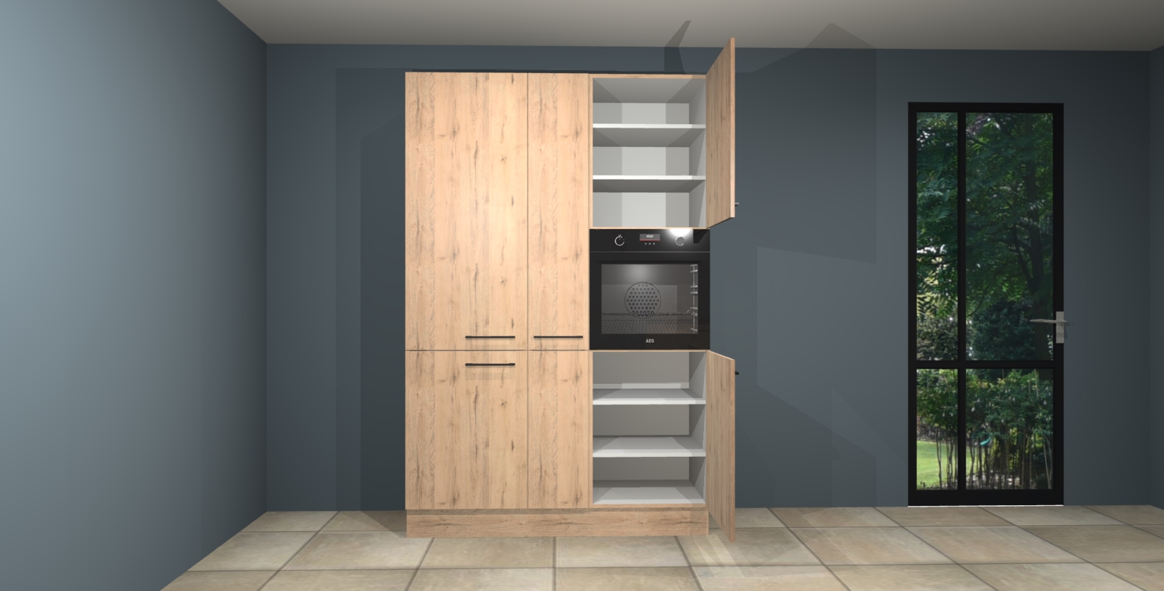 Met een modern, tijdloos design en ruime opslagruimte, zult u zich in no-time thuis voelen in uw nieuwe keuken. Uw leven wordt eenvoudiger met de soft-close deuren die voor het ultieme stille comfort zorgen - geen geluid dat u stoort terwijl u kookt. Ook is de keuken voorzien van 5 ingebouwde apparaten: een oven, inductie kookplaat, afzuigkap, vaatwasser en koelkast. Deze kunnen gemakkelijk na bestelling worden bijgewerkt naar AEG - waardoor uw luxe ervaring compleet is.