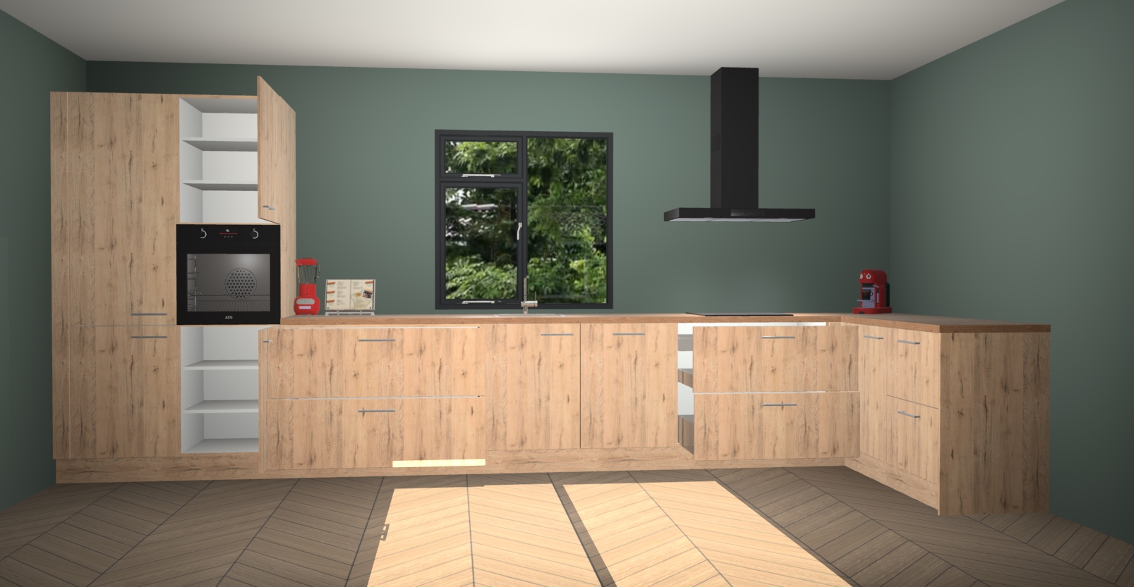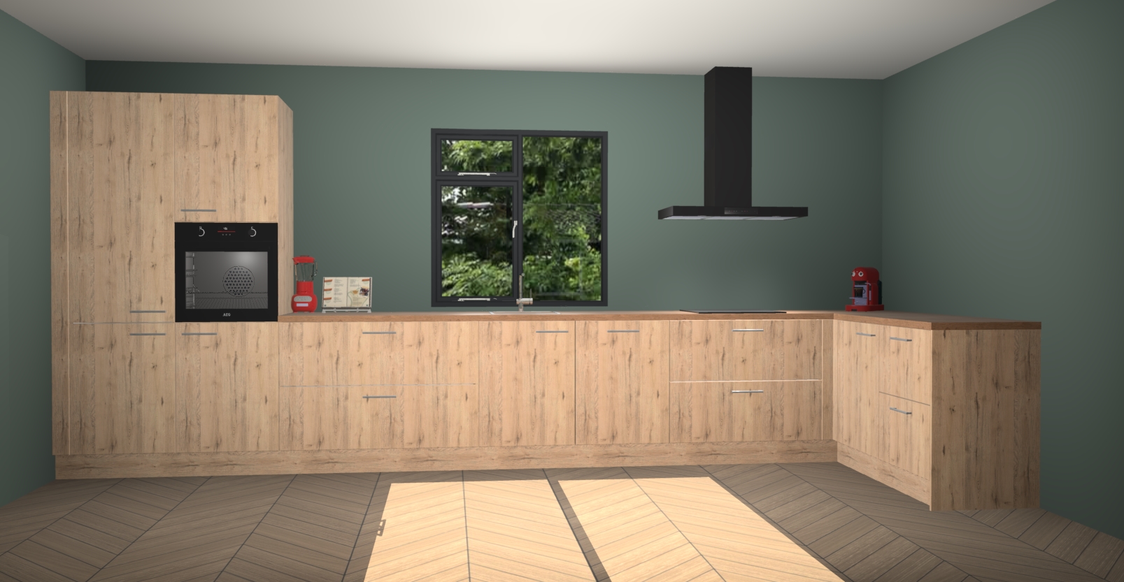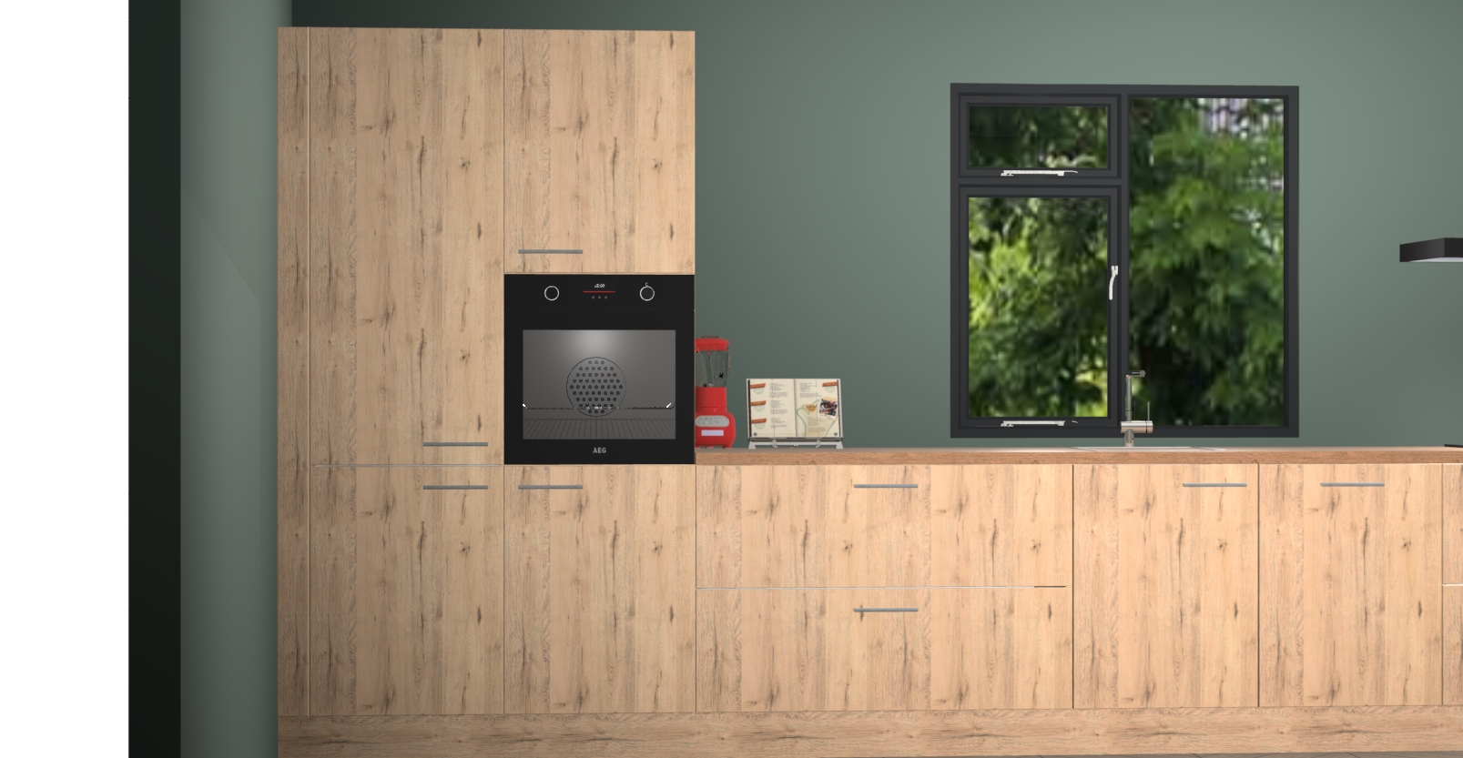 De Madera natuur keuken Lille wordt geleverd met vijf inbouwapparaten - een oven, inductiekookplaat, afzuigkap, vaatwasser en koelkast. Maar dat is nog niet alles! Na bestelling kunnen deze apparaten eenvoudig worden geüpgraded naar premium AEG-apparatuur. Bovendien is er zelfs de optie om de oven te vervangen door een combimagnetron of uw inductiekookplaat te vervangen door een kookplaat met geïntegreerde afzuiging.