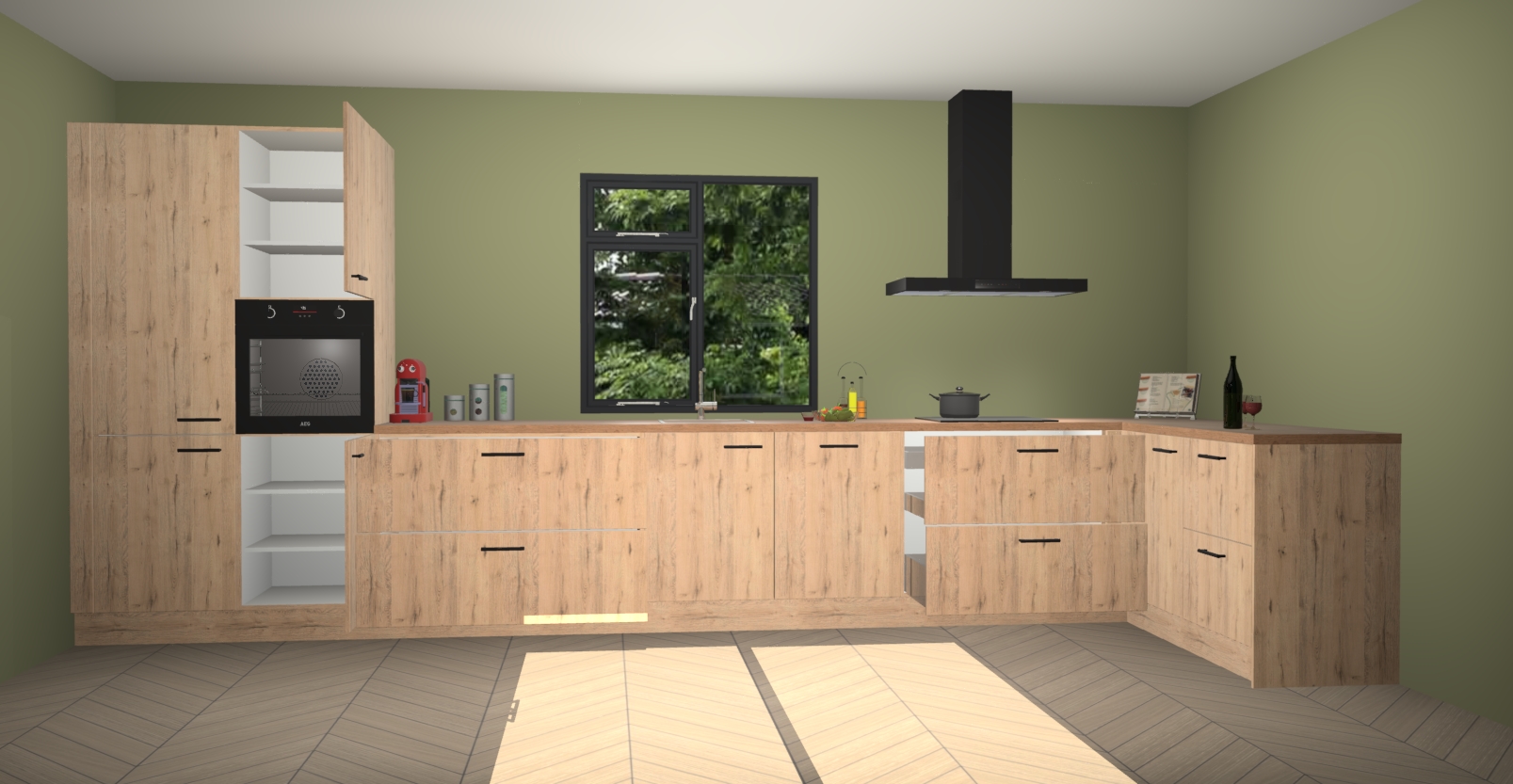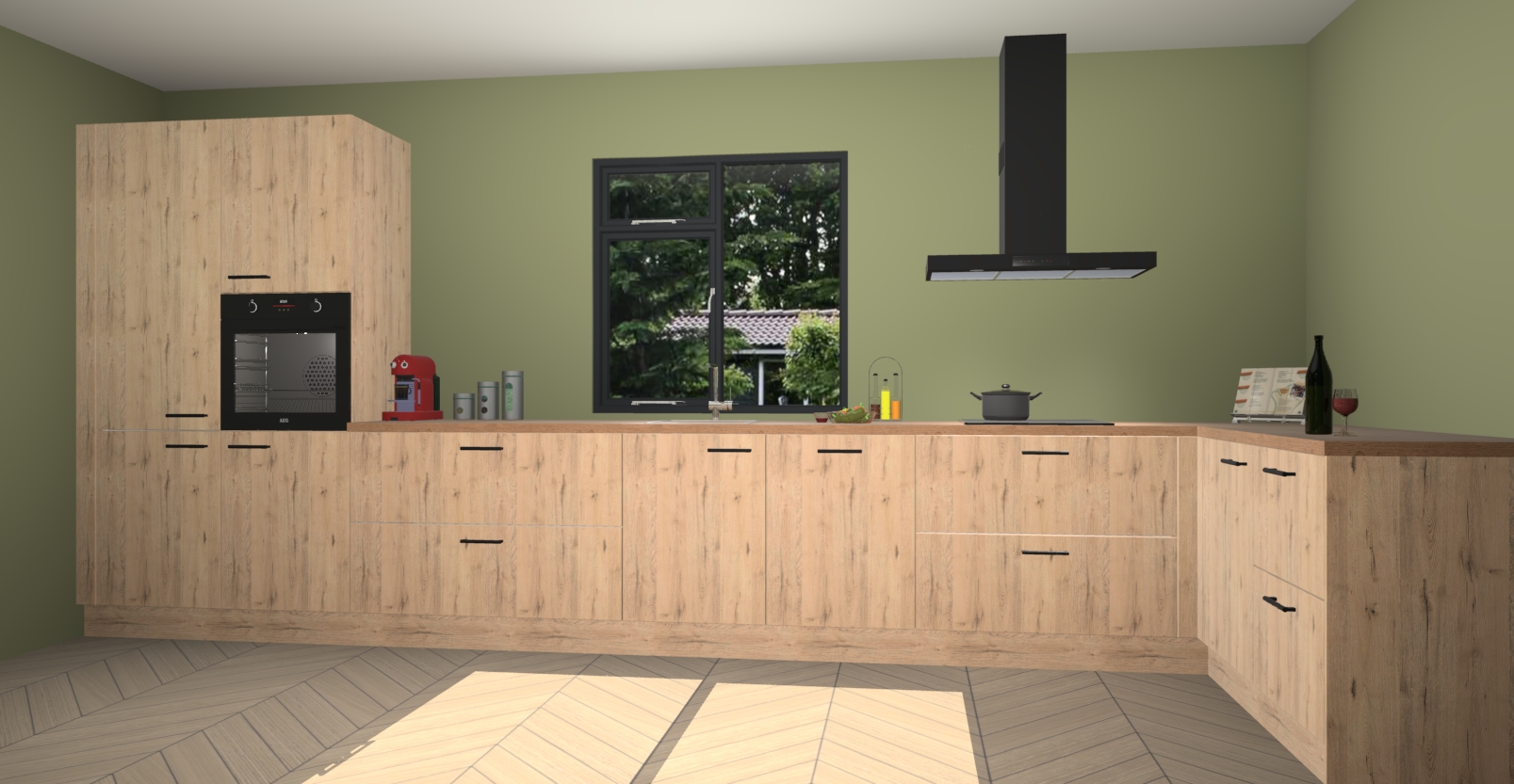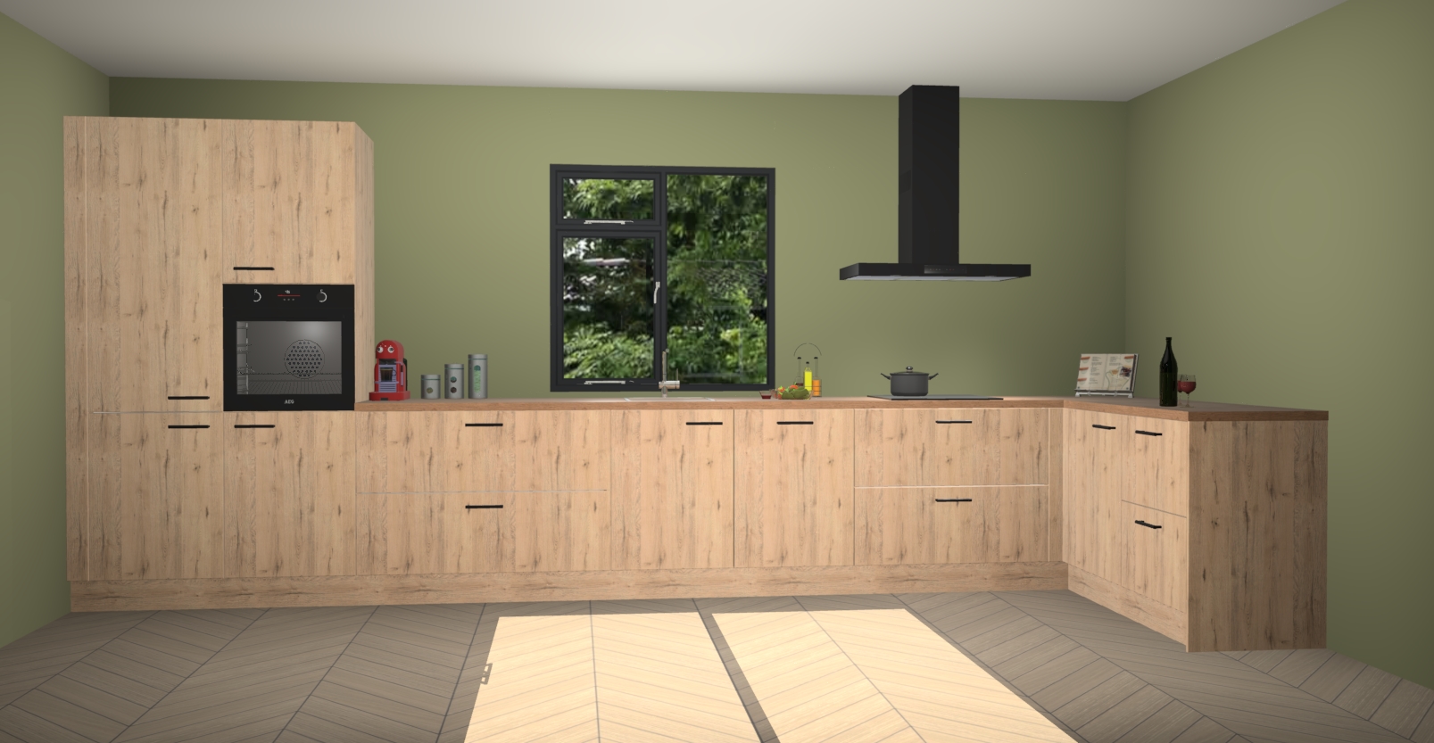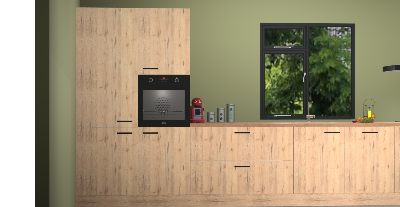 De Madera natuur keuken Lille wordt geleverd met vijf inbouwapparaten - een oven, inductiekookplaat, afzuigkap, vaatwasser en koelkast. Maar dat is nog niet alles! Na bestelling kunnen deze apparaten eenvoudig worden geüpgraded naar premium AEG-apparatuur. Bovendien is er zelfs de optie om de oven te vervangen door een combimagnetron of uw inductiekookplaat te vervangen door een kookplaat met geïntegreerde afzuiging.