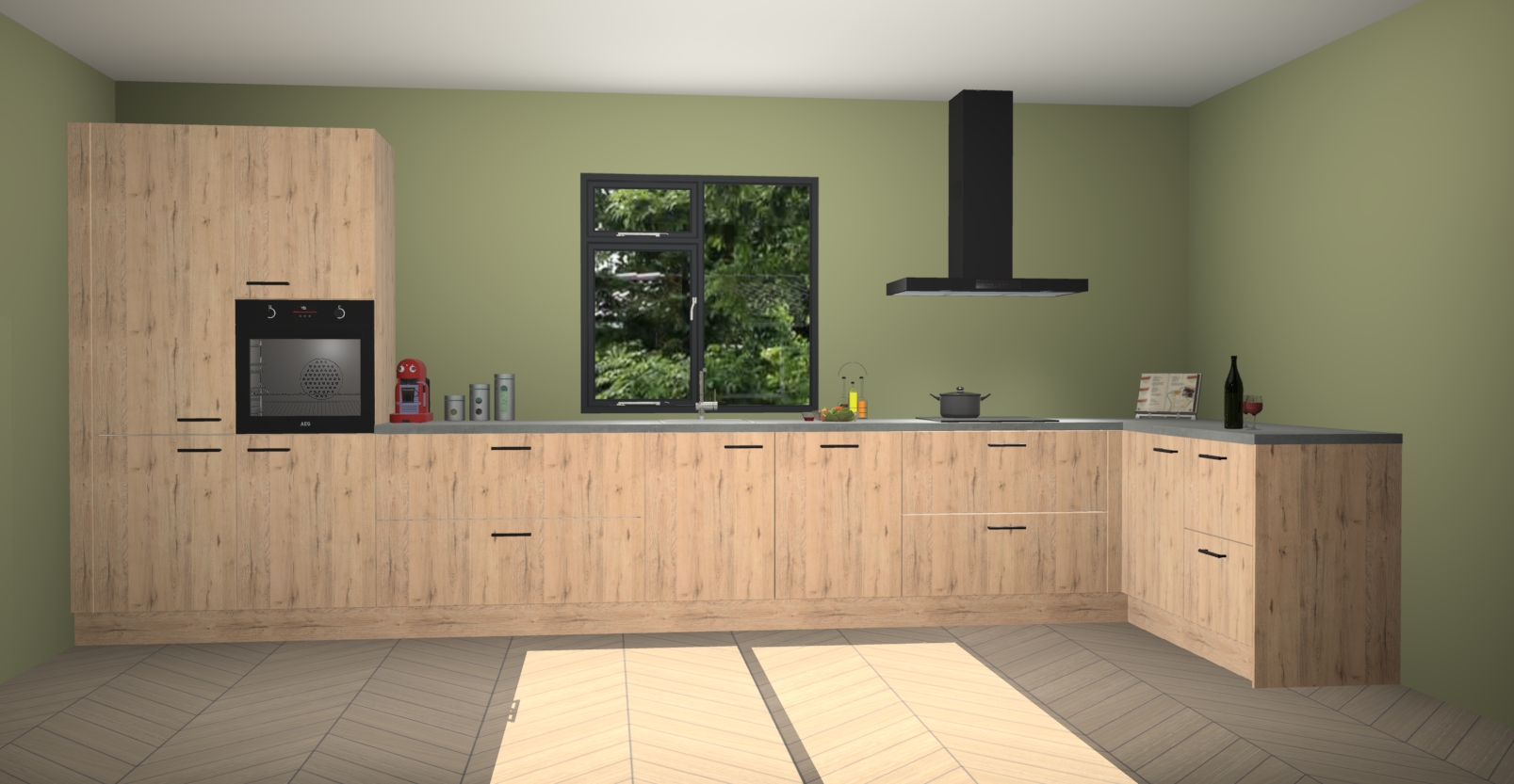 De Madera natuur keuken Lille wordt geleverd met vijf inbouwapparaten - een oven, inductiekookplaat, afzuigkap, vaatwasser en koelkast. Maar dat is nog niet alles! Na bestelling kunnen deze apparaten eenvoudig worden geüpgraded naar premium AEG-apparatuur. Bovendien is er zelfs de optie om de oven te vervangen door een combimagnetron of uw inductiekookplaat te vervangen door een kookplaat met geïntegreerde afzuiging.