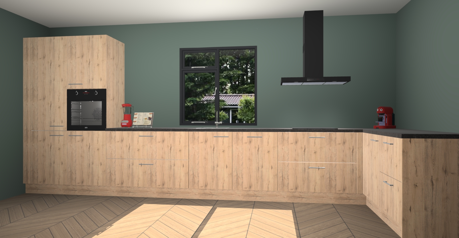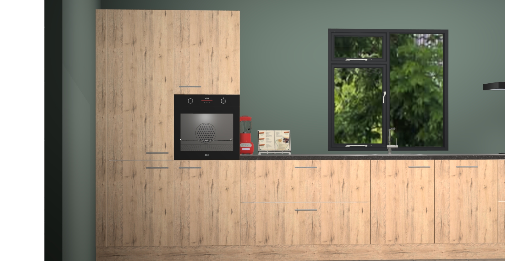 De Madera natuur keuken Lille wordt geleverd met vijf inbouwapparaten - een oven, inductiekookplaat, afzuigkap, vaatwasser en koelkast. Maar dat is nog niet alles! Na bestelling kunnen deze apparaten eenvoudig worden geüpgraded naar premium AEG-apparatuur. Bovendien is er zelfs de optie om de oven te vervangen door een combimagnetron of uw inductiekookplaat te vervangen door een kookplaat met geïntegreerde afzuiging.