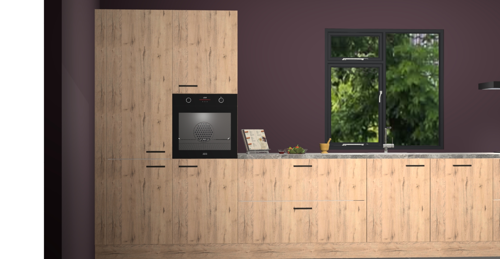 De Madera natuur keuken Lille wordt geleverd met vijf inbouwapparaten - een oven, inductiekookplaat, afzuigkap, vaatwasser en koelkast. Maar dat is nog niet alles! Na bestelling kunnen deze apparaten eenvoudig worden geüpgraded naar premium AEG-apparatuur. Bovendien is er zelfs de optie om de oven te vervangen door een combimagnetron of uw inductiekookplaat te vervangen door een kookplaat met geïntegreerde afzuiging.
