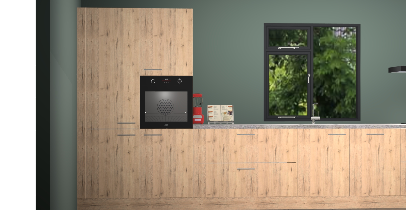 De Madera natuur keuken Lille wordt geleverd met vijf inbouwapparaten - een oven, inductiekookplaat, afzuigkap, vaatwasser en koelkast. Maar dat is nog niet alles! Na bestelling kunnen deze apparaten eenvoudig worden geüpgraded naar premium AEG-apparatuur. Bovendien is er zelfs de optie om de oven te vervangen door een combimagnetron of uw inductiekookplaat te vervangen door een kookplaat met geïntegreerde afzuiging.