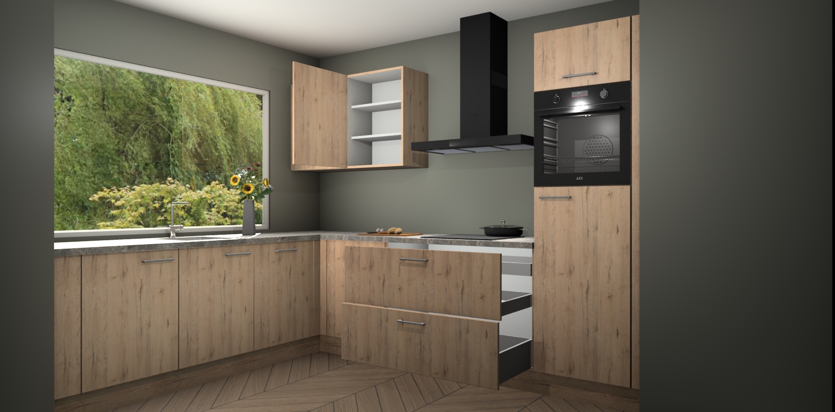 Bent u op zoek naar een onberispelijk keukenontwerp dat Duitse precisie en uitmuntende architectuur ademt? Zoek niet verder - de madera natuur keuken Limonos biedt de perfecte moderne mix van stijl en functionaliteit.