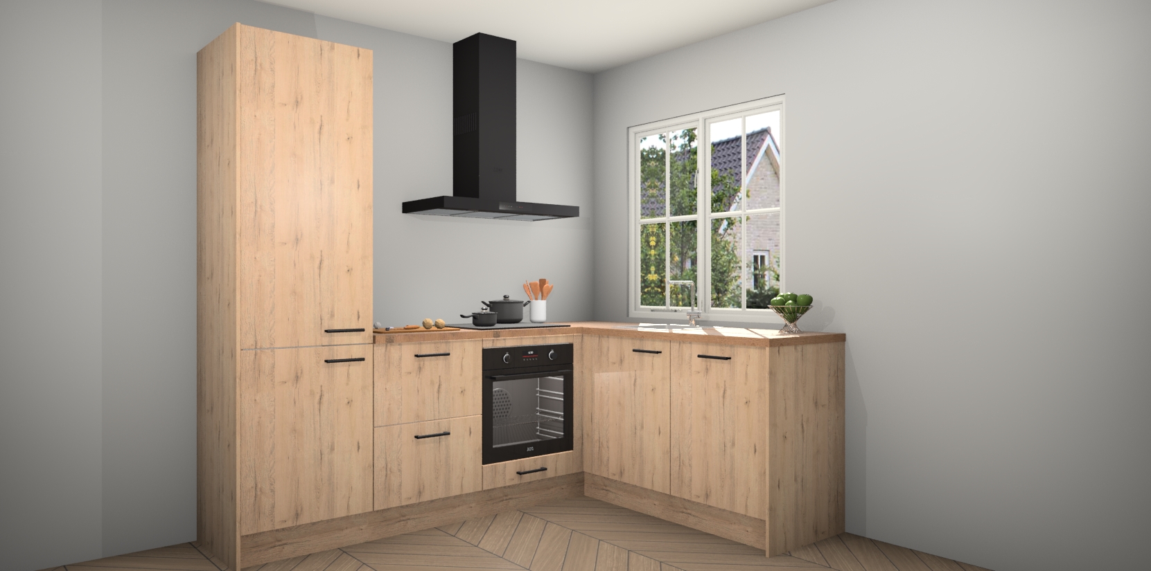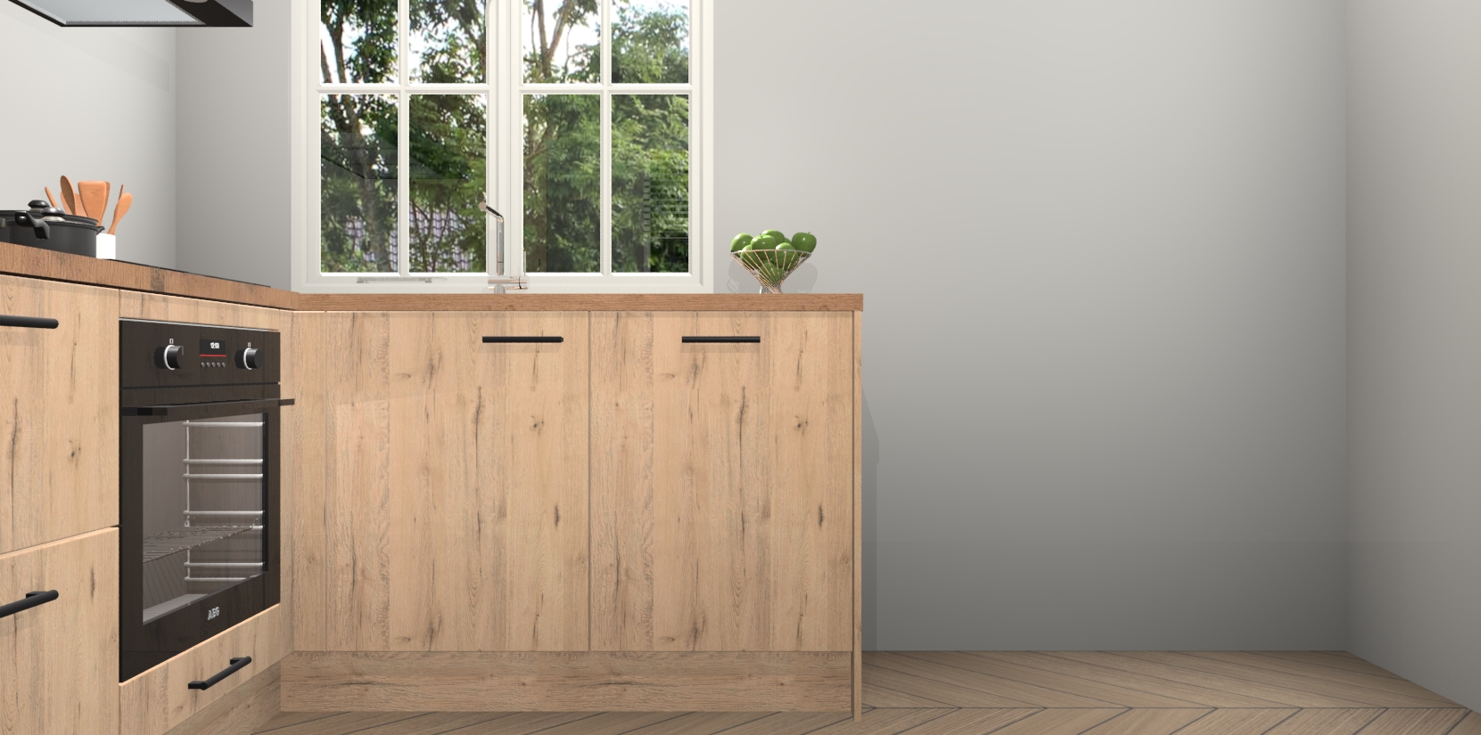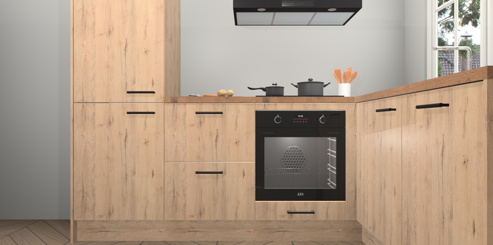 Met de Madera Natuur keuken Linz krijgt u 5 op maat gemaakte apparaten: een oven, inductiekookplaat, afzuigkap, vaatwasser en koelkast die na bestelling makkelijk worden geüpgraded naar AEG-producten. Met de zacht sluitende deuren, bent u verzekerd van eenvoudige bediening in stilte. Het kastmeubilair wordt alvast pre-assemblage geleverd waardoor u sneller met het installeren begint. Ook zijn alle deuren voorzien van softclose zodat er geen sporen op de lade blijven als u ze dicht doet. Bovendien hoeft u bij ons geen twijfels of verassingen te hebben: we hebben een vaste lage prijs waardoor u weet wat u mag verwachten bij elke bestelling.