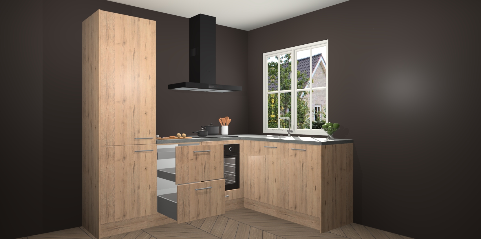 Met de Madera Natuur keuken Linz krijgt u 5 op maat gemaakte apparaten: een oven, inductiekookplaat, afzuigkap, vaatwasser en koelkast die na bestelling makkelijk worden geüpgraded naar AEG-producten. Met de zacht sluitende deuren, bent u verzekerd van eenvoudige bediening in stilte. Het kastmeubilair wordt alvast pre-assemblage geleverd waardoor u sneller met het installeren begint. Ook zijn alle deuren voorzien van softclose zodat er geen sporen op de lade blijven als u ze dicht doet. Bovendien hoeft u bij ons geen twijfels of verassingen te hebben: we hebben een vaste lage prijs waardoor u weet wat u mag verwachten bij elke bestelling.
