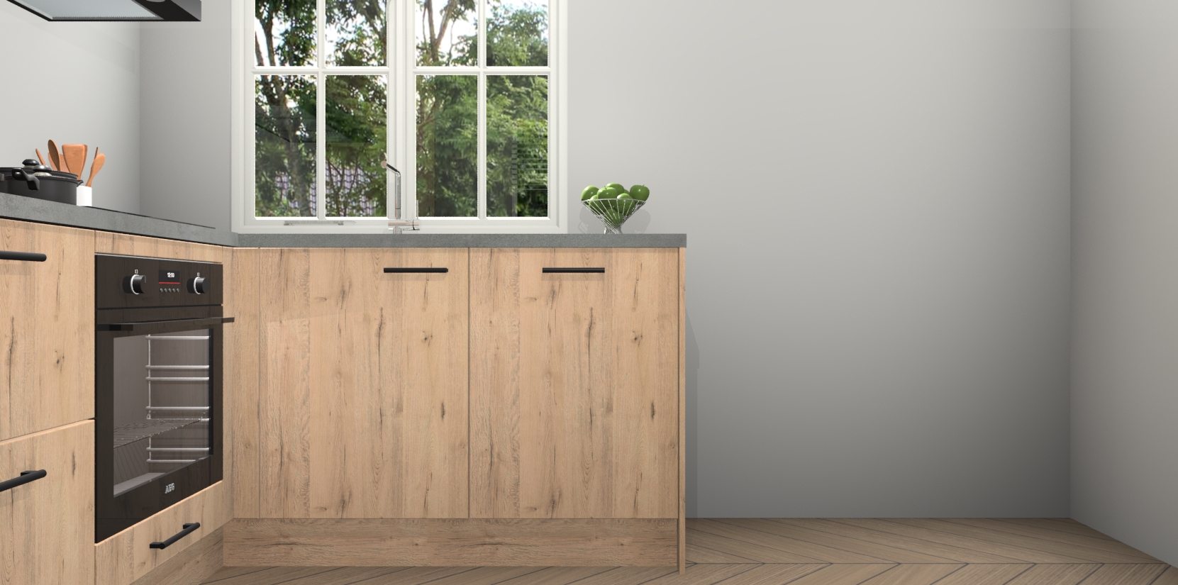 Met de Madera Natuur keuken Linz krijgt u 5 op maat gemaakte apparaten: een oven, inductiekookplaat, afzuigkap, vaatwasser en koelkast die na bestelling makkelijk worden geüpgraded naar AEG-producten. Met de zacht sluitende deuren, bent u verzekerd van eenvoudige bediening in stilte. Het kastmeubilair wordt alvast pre-assemblage geleverd waardoor u sneller met het installeren begint. Ook zijn alle deuren voorzien van softclose zodat er geen sporen op de lade blijven als u ze dicht doet. Bovendien hoeft u bij ons geen twijfels of verassingen te hebben: we hebben een vaste lage prijs waardoor u weet wat u mag verwachten bij elke bestelling.