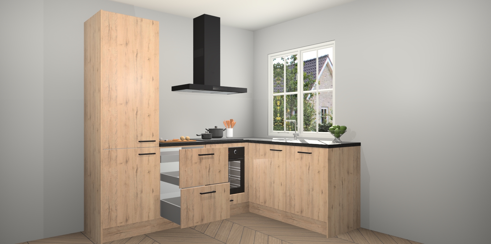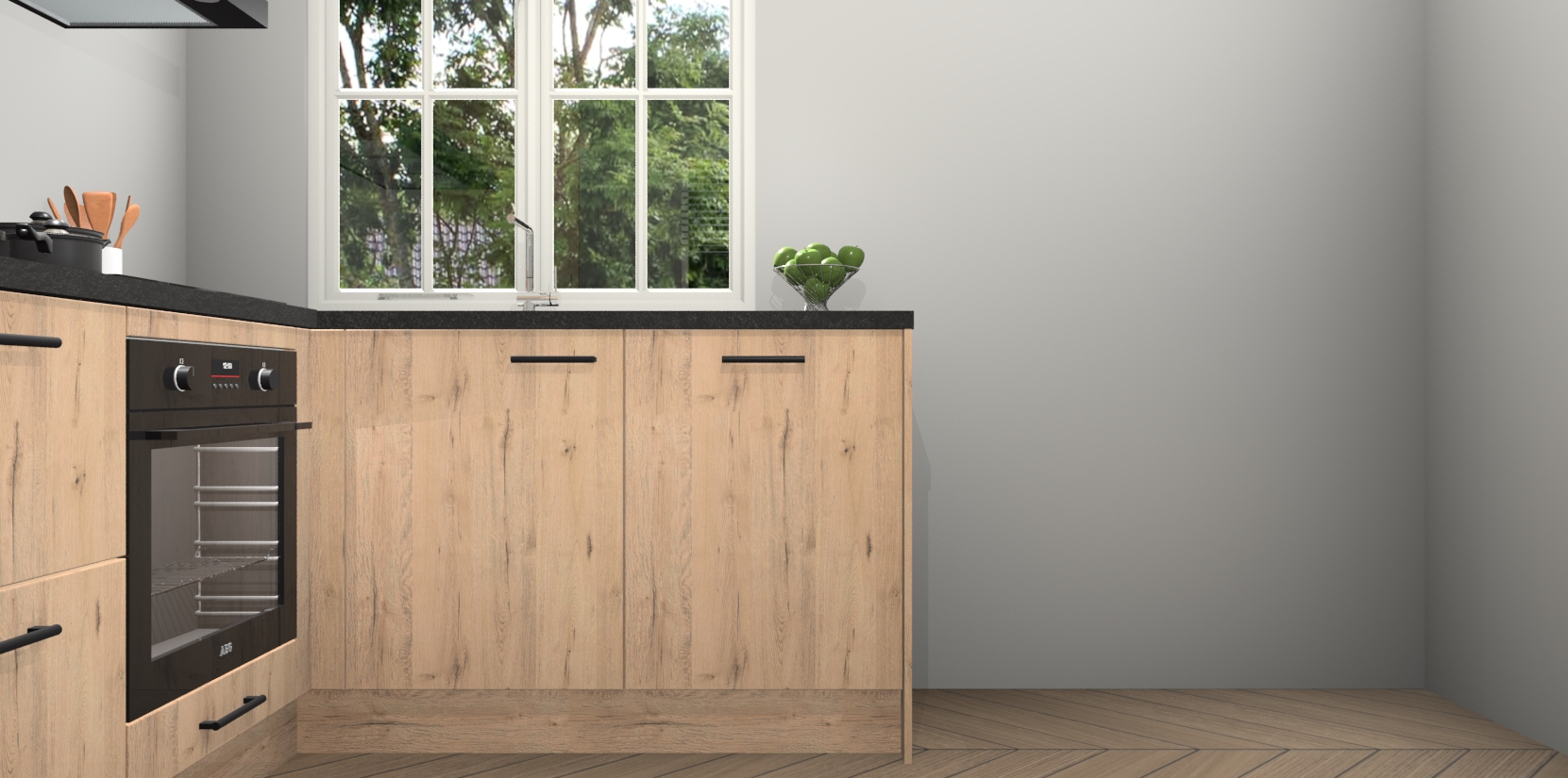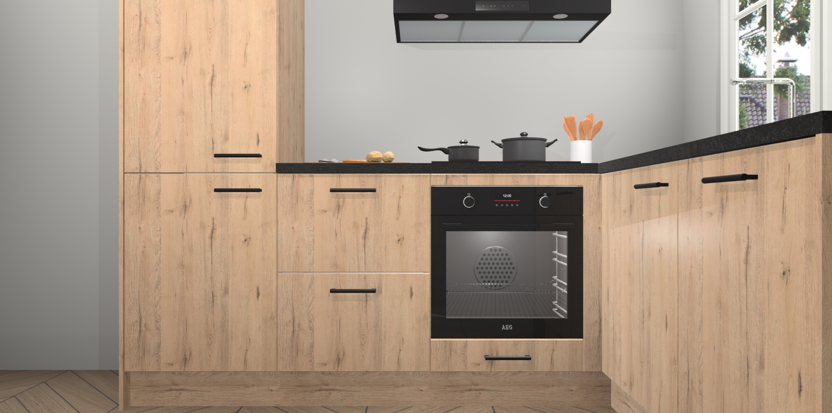 Met de Madera Natuur keuken Linz krijgt u 5 op maat gemaakte apparaten: een oven, inductiekookplaat, afzuigkap, vaatwasser en koelkast die na bestelling makkelijk worden geüpgraded naar AEG-producten. Met de zacht sluitende deuren, bent u verzekerd van eenvoudige bediening in stilte. Het kastmeubilair wordt alvast pre-assemblage geleverd waardoor u sneller met het installeren begint. Ook zijn alle deuren voorzien van softclose zodat er geen sporen op de lade blijven als u ze dicht doet. Bovendien hoeft u bij ons geen twijfels of verassingen te hebben: we hebben een vaste lage prijs waardoor u weet wat u mag verwachten bij elke bestelling.