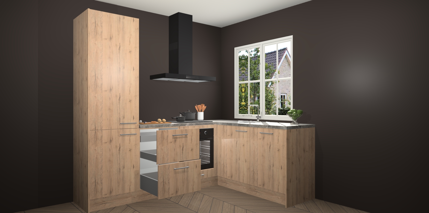 De Madera Natuur keuken Linz is de perfecte keuze voor uw nieuwe moderne en tijdloze keuken. Ga voor moderne en tijdloze elegantie in uw keuken. De prachtige hoekkeuken biedt een verfrissende kijk op de manier waarop we ons vertrouwde keukenontwerp kunnen aanpassen in een nieuwe stijl. Één blik om alles te zien: zo mooi dat het bijna magisch lijkt.