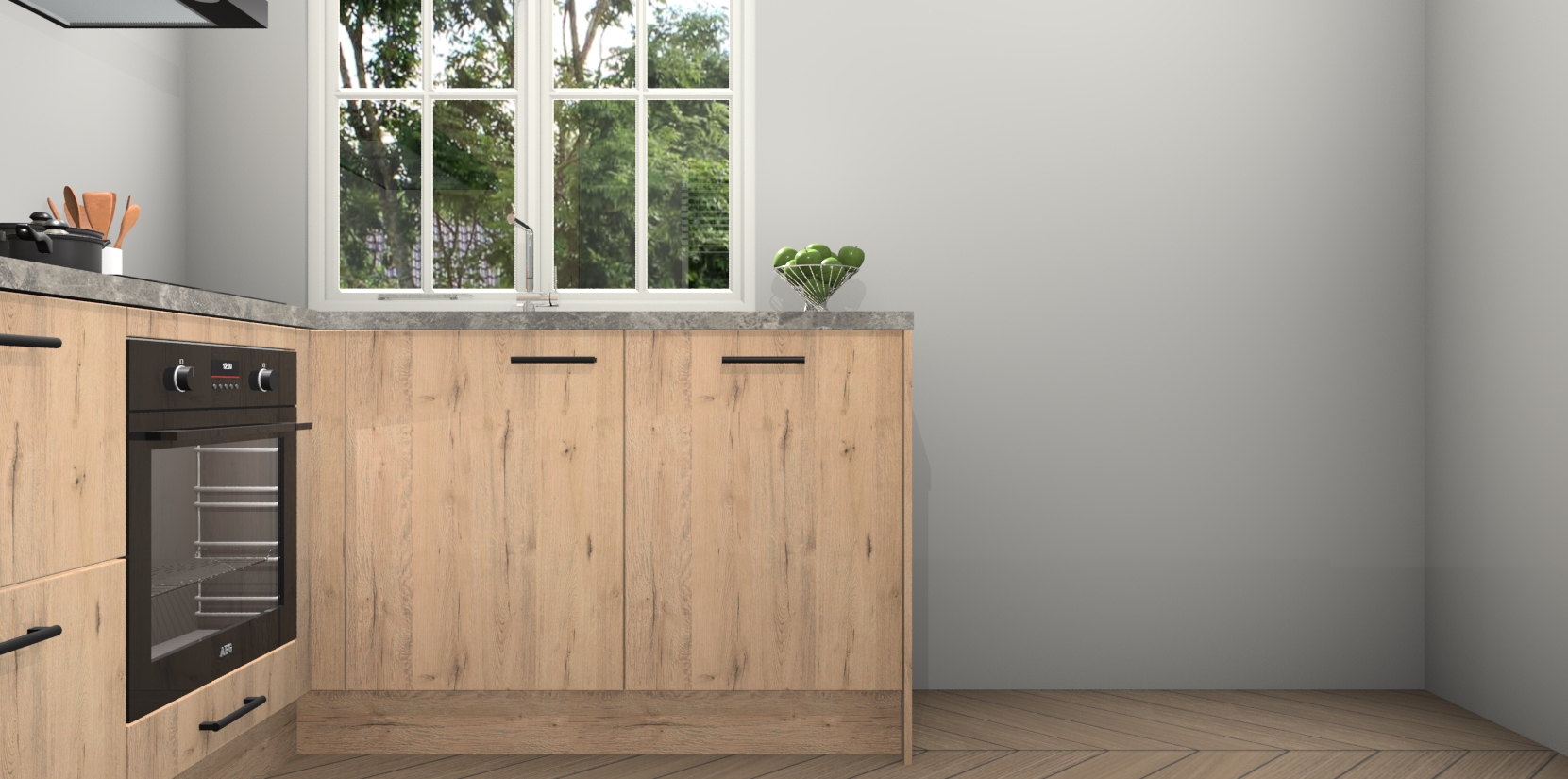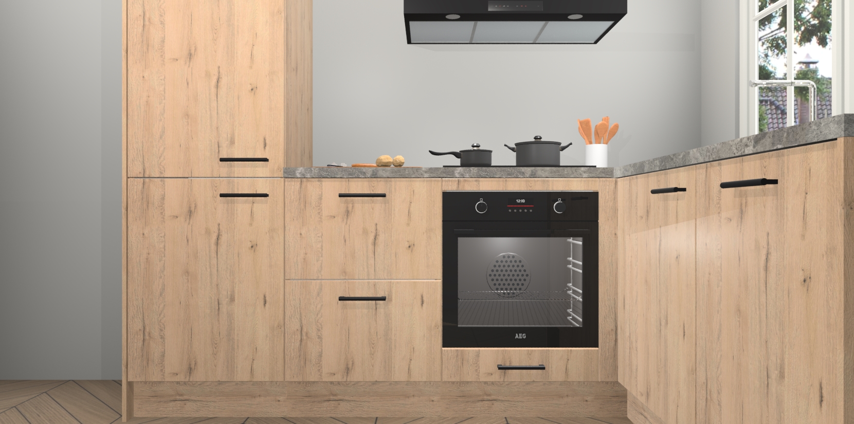 Met de Madera Natuur keuken Linz krijgt u 5 op maat gemaakte apparaten: een oven, inductiekookplaat, afzuigkap, vaatwasser en koelkast die na bestelling makkelijk worden geüpgraded naar AEG-producten. Met de zacht sluitende deuren, bent u verzekerd van eenvoudige bediening in stilte. Het kastmeubilair wordt alvast pre-assemblage geleverd waardoor u sneller met het installeren begint. Ook zijn alle deuren voorzien van softclose zodat er geen sporen op de lade blijven als u ze dicht doet. Bovendien hoeft u bij ons geen twijfels of verassingen te hebben: we hebben een vaste lage prijs waardoor u weet wat u mag verwachten bij elke bestelling.