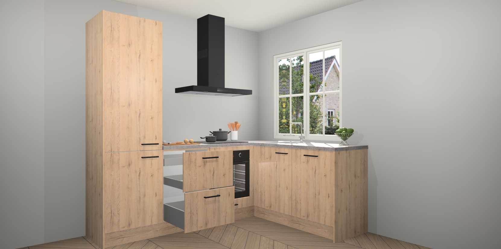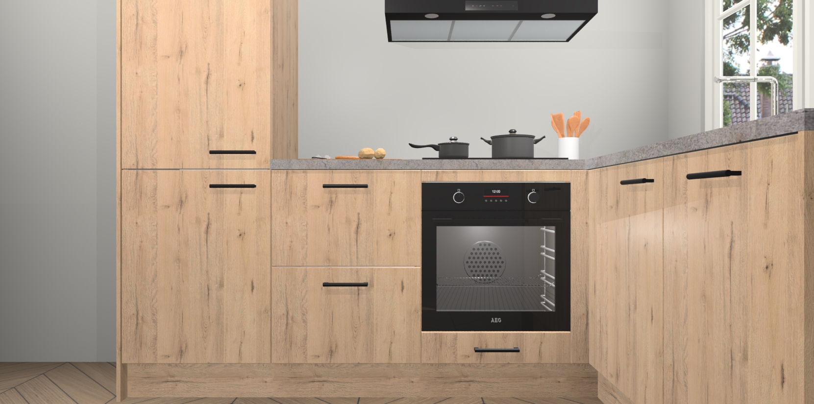 Met de Madera Natuur keuken Linz krijgt u 5 op maat gemaakte apparaten: een oven, inductiekookplaat, afzuigkap, vaatwasser en koelkast die na bestelling makkelijk worden geüpgraded naar AEG-producten. Met de zacht sluitende deuren, bent u verzekerd van eenvoudige bediening in stilte. Het kastmeubilair wordt alvast pre-assemblage geleverd waardoor u sneller met het installeren begint. Ook zijn alle deuren voorzien van softclose zodat er geen sporen op de lade blijven als u ze dicht doet. Bovendien hoeft u bij ons geen twijfels of verassingen te hebben: we hebben een vaste lage prijs waardoor u weet wat u mag verwachten bij elke bestelling.