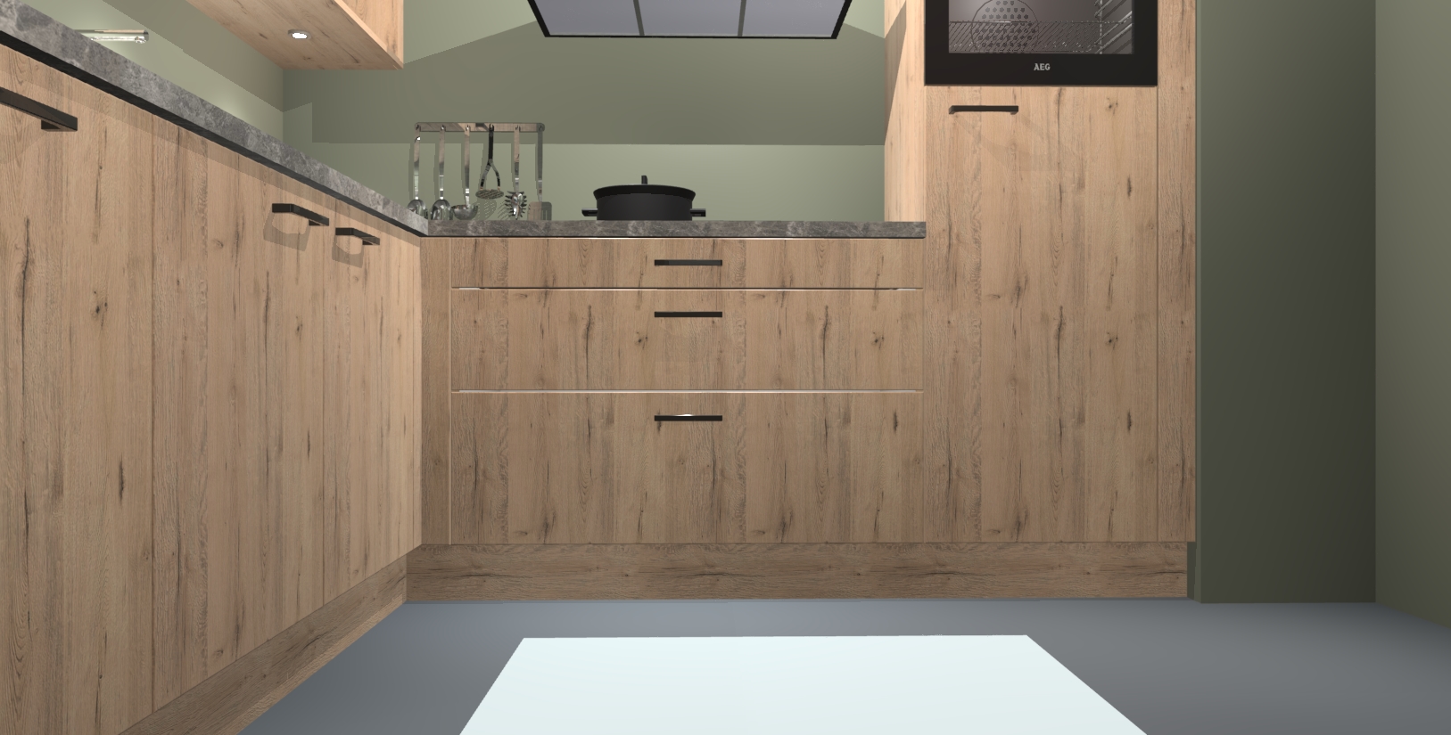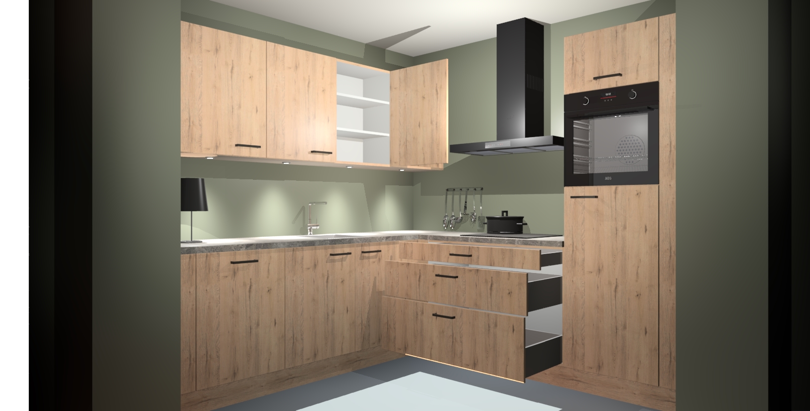Met een modern, tijdloos design en ruime opslagruimte, zult u zich in no-time thuis voelen in uw nieuwe keuken. Uw leven wordt eenvoudiger met de soft-close deuren die voor het ultieme stille comfort zorgen - geen geluid dat u stoort terwijl u kookt. Ook is de keuken voorzien van 5 ingebouwde apparaten: een oven, inductie kookplaat, afzuigkap, vaatwasser en koelkast. Deze kunnen gemakkelijk na bestelling worden bijgewerkt naar AEG - waardoor uw luxe ervaring compleet is.
