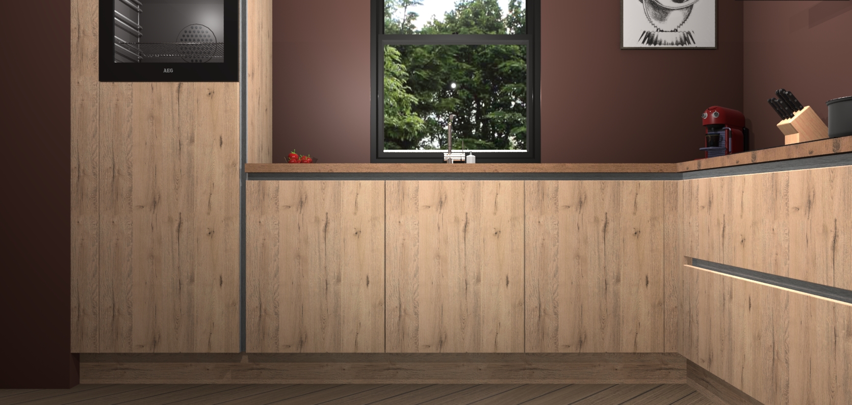 Welkom bij de madera natuur keuken Lublin. Deze prachtige keuken zal de komende jaren het middelpunt van de belangstelling in uw huis zijn. Uitgerust met vijf inbouwapparaten komt u nooit kookgereedschap tekort. Bovendien geeft de warme houtlook elke ruimte een uitnodigende en tijdloze uitstraling.