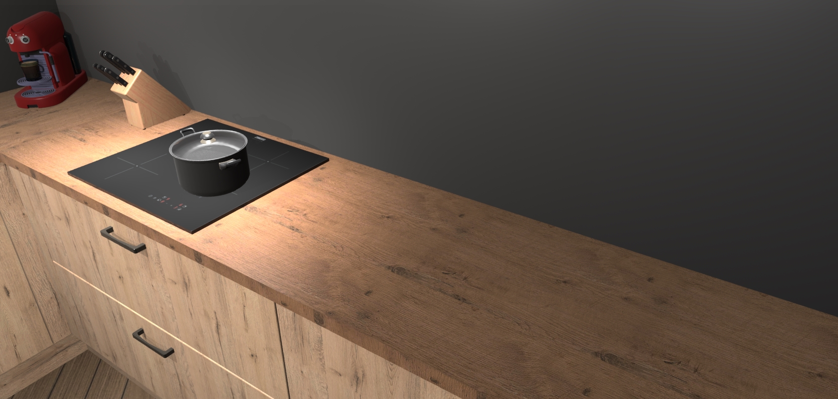• Bij een hoekwerkblad zijn de hoeken in gevreesd en op maat gemaakt