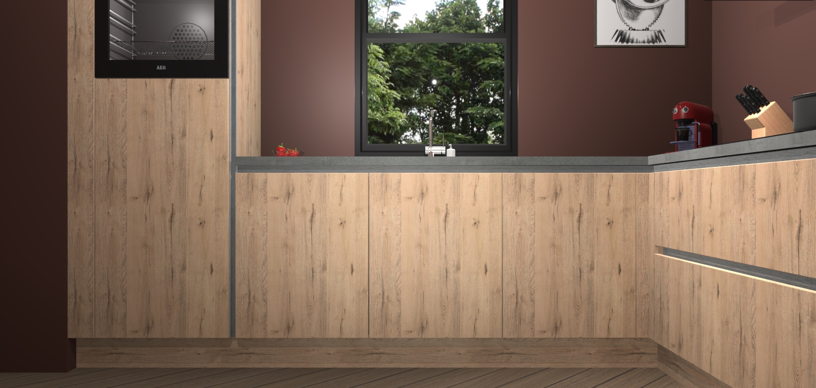 Welkom bij de madera natuur keuken Lublin. Deze prachtige keuken zal de komende jaren het middelpunt van de belangstelling in uw huis zijn. Uitgerust met vijf inbouwapparaten komt u nooit kookgereedschap tekort. Bovendien geeft de warme houtlook elke ruimte een uitnodigende en tijdloze uitstraling.