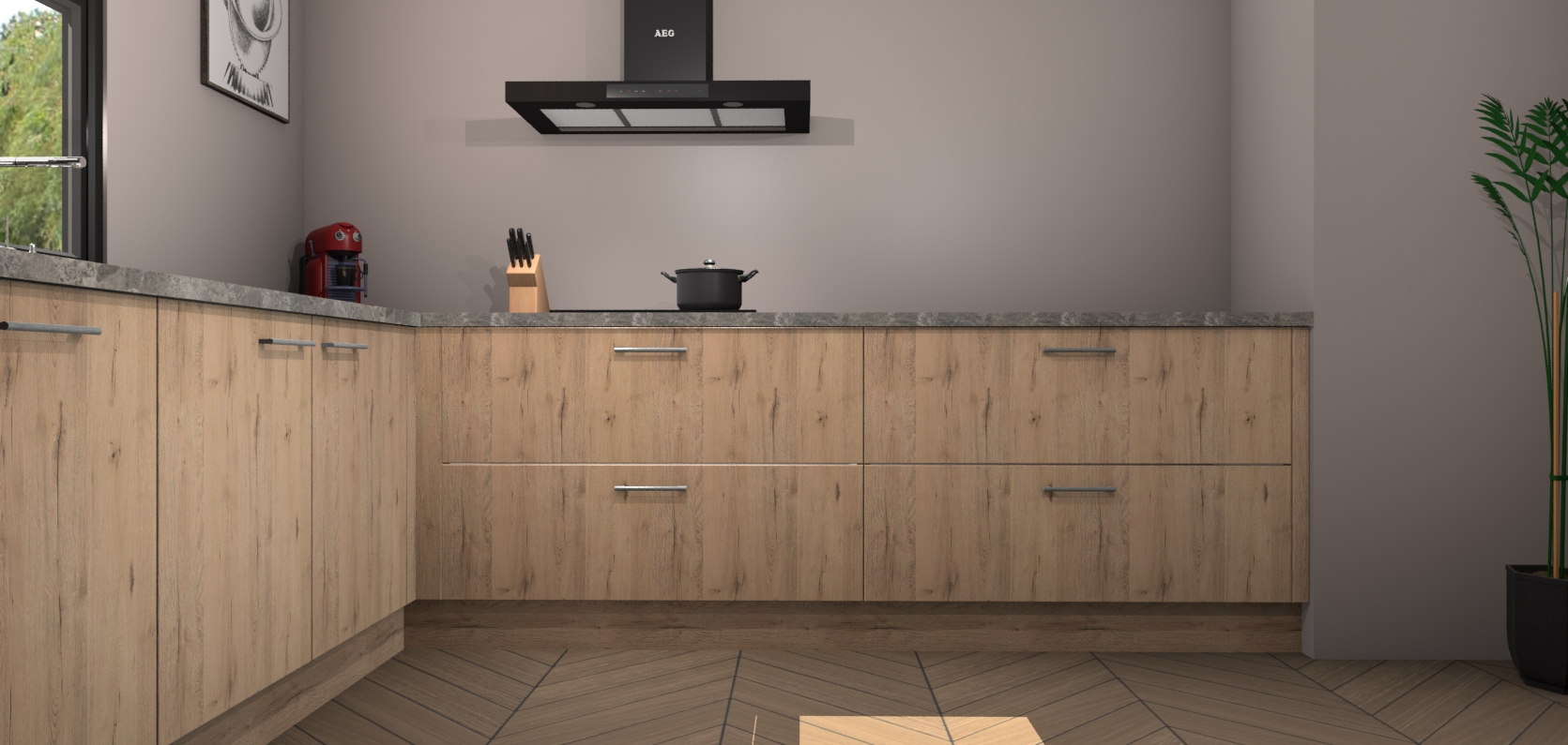 Inclusief plinten, stelpoten en werkblad