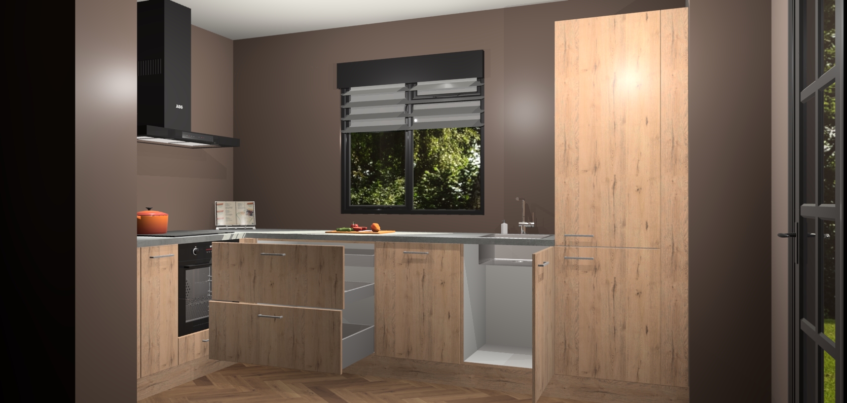 Moedige modernisten! De Madera Natuur keuken Luzern is het perfecte antwoord op al uw keukendromen. Dit geraffineerde, tijdloze ontwerp combineert strakke kasten zodat u die dure look krijgt zonder het dure prijskaartje. We weten dat planning en uitvoering de sleutels zijn tot een geslaagde keukenrenovatie, dus hebben we ervoor gezorgd dat we vijf inbouwapparaten in ons pakket hebben: een oven, inductiekookplaat, afzuigkap, vaatwasser en koelkast. Deze kunnen na bestelling gemakkelijk worden uitgebreid voor nog meer gemak.