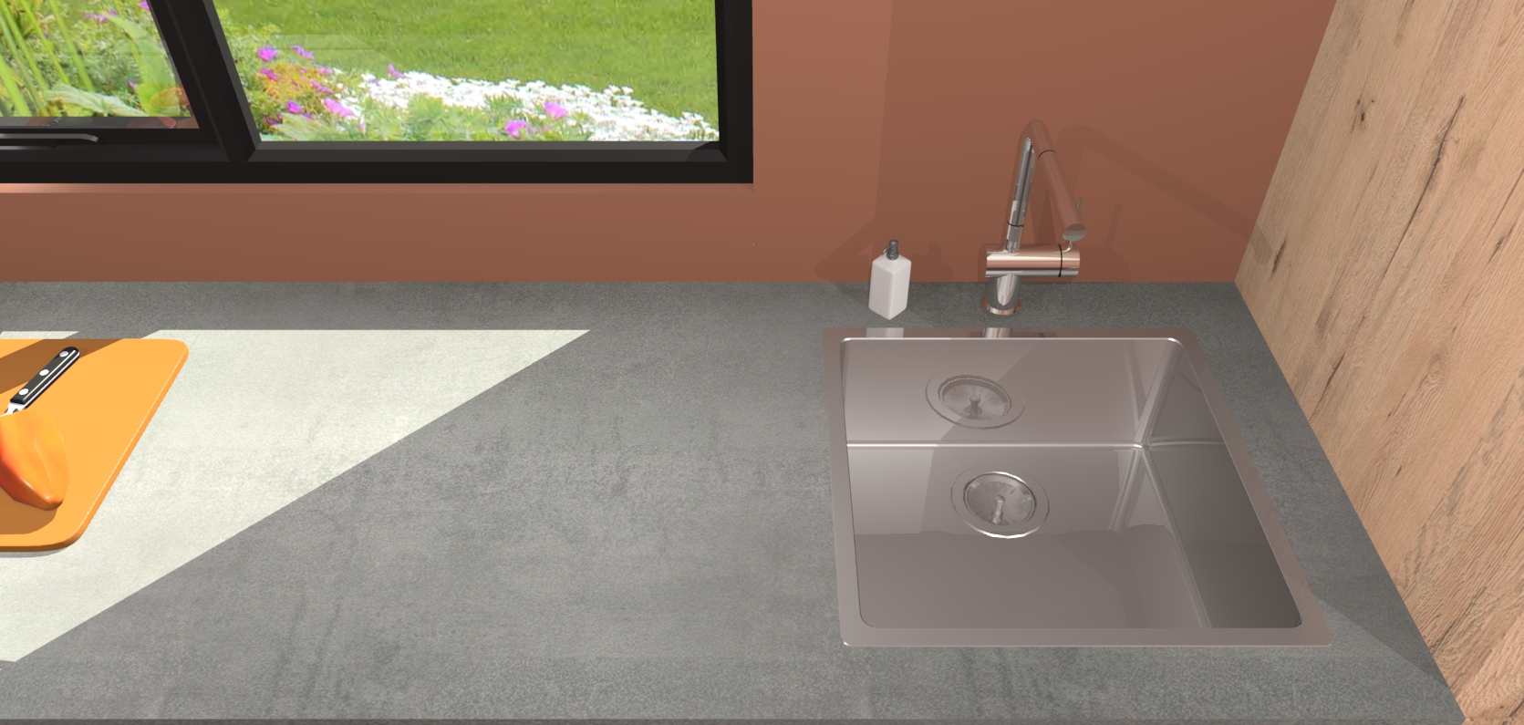 - De spoelbak is nog niet in gevreesd. Dit dient tijdens het werk gedaan te worden