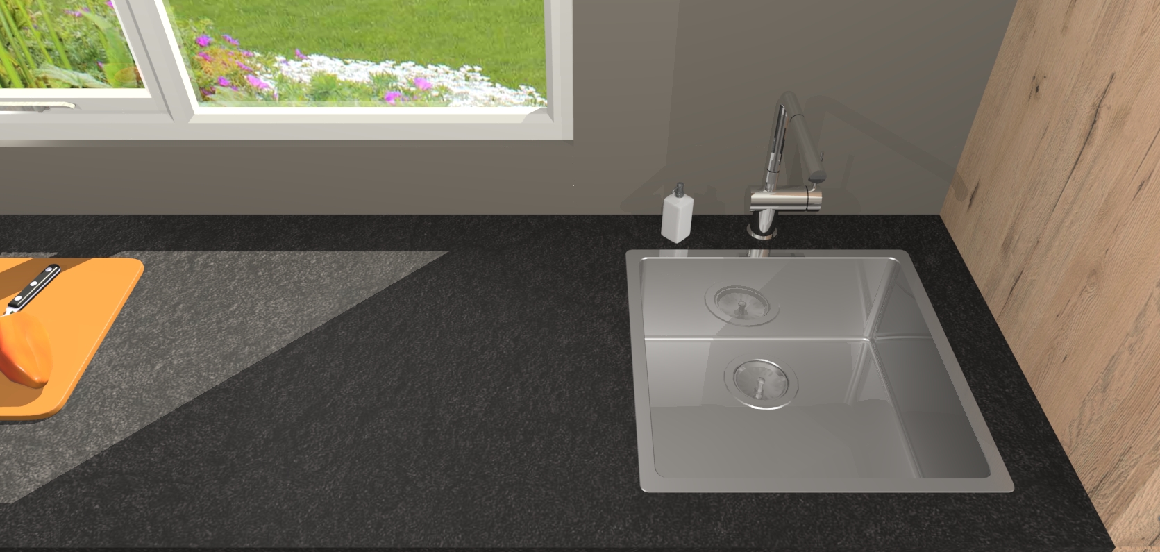 • De spoelbak is nog niet in gevreesd. Dit dient tijdens het werk gedaan te worden