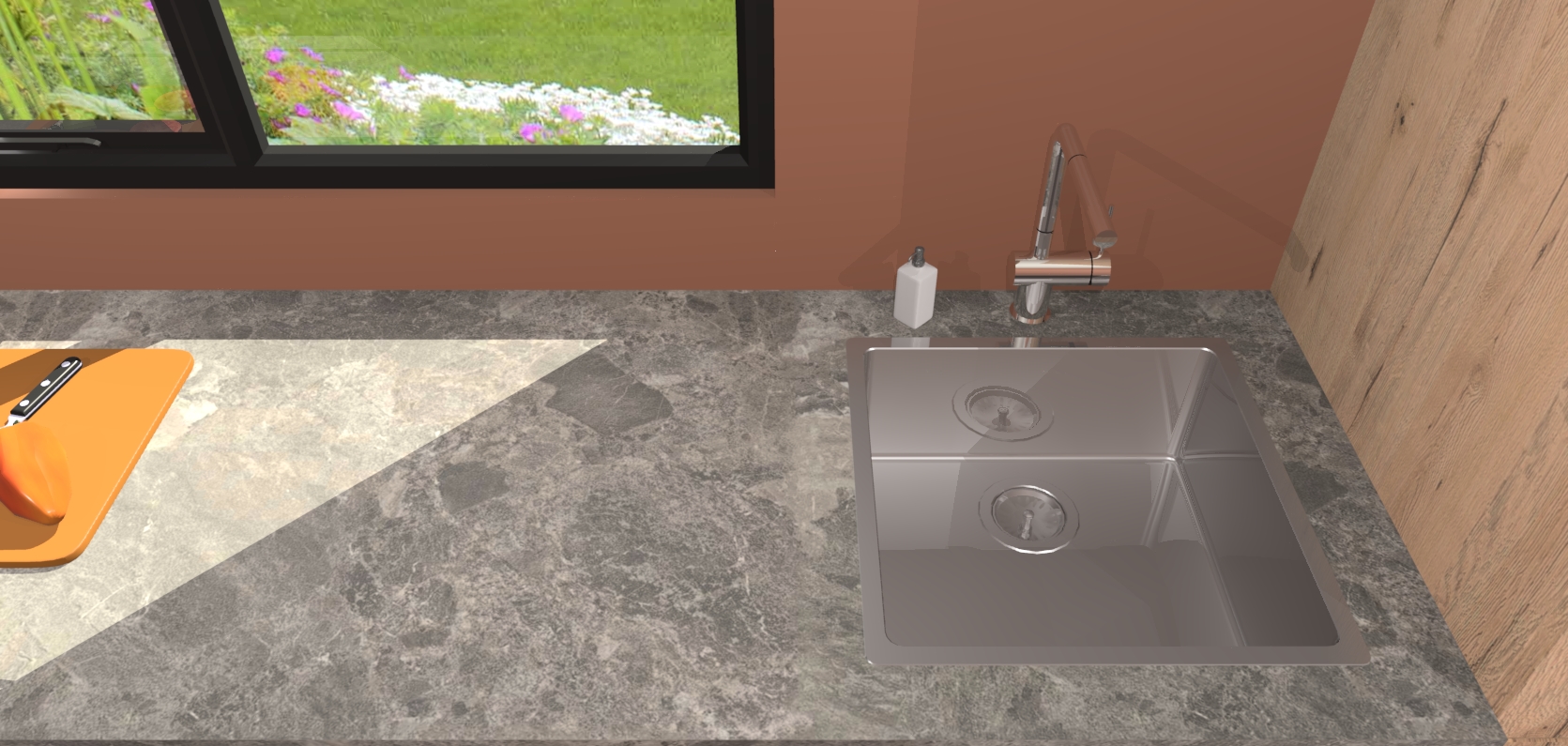 - De spoelbak is nog niet in gevreesd. Dit dient tijdens het werk gedaan te worden