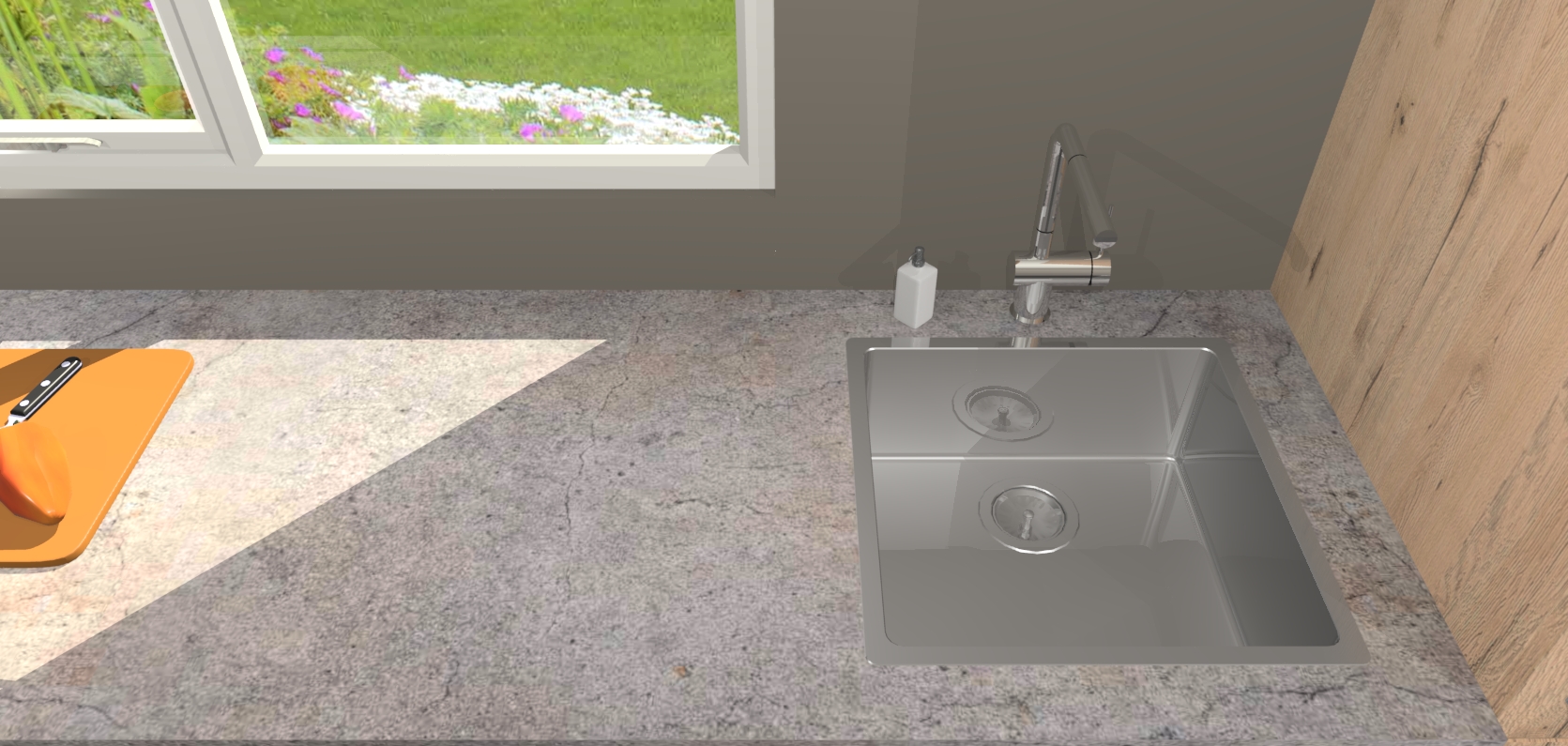 • De spoelbak is nog niet in gevreesd. Dit dient tijdens het werk gedaan te worden