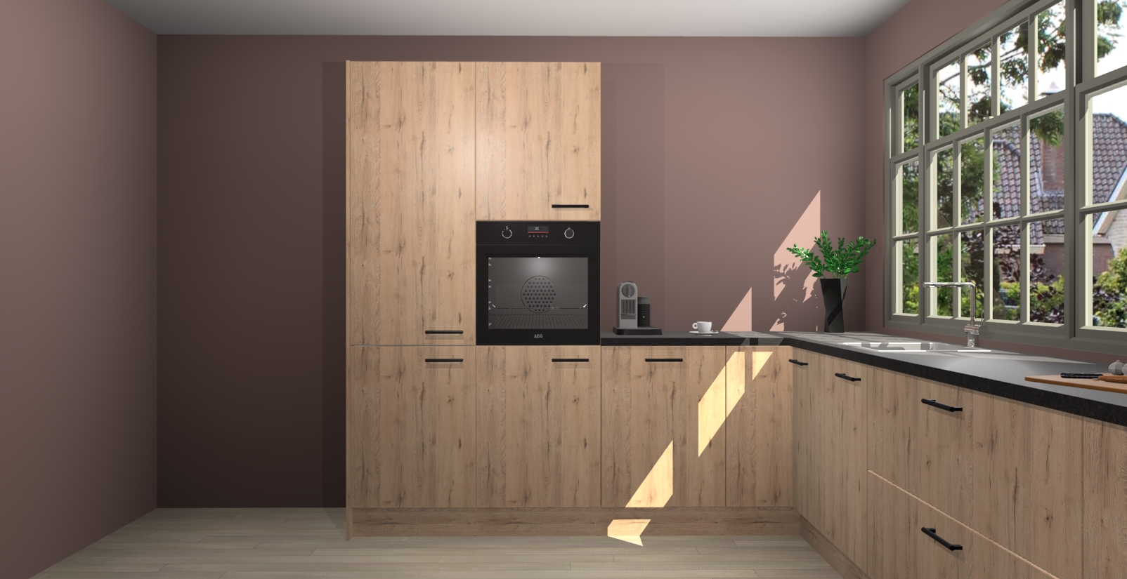 Heeft u nog apparatuur nodig? Geen probleem: de Madera Natuur keuken Malaga bevat vijf ingebouwde apparaten - een oven, inductiekookplaat, afzuigkap, vaatwasser en koelkast - die gemakkelijk kunnen worden bijgewerkt naar AEG na bestelling. En als dat nog niet genoeg is; onze kasten worden pre-geassembleerd geleverd en zijn verkrijgbaar tegen een vastgeroeste lage prijs! U hoeft nooit meer te zoeken naar goede kwaliteit en service want onze producten hebben echt Duitse kwaliteit.