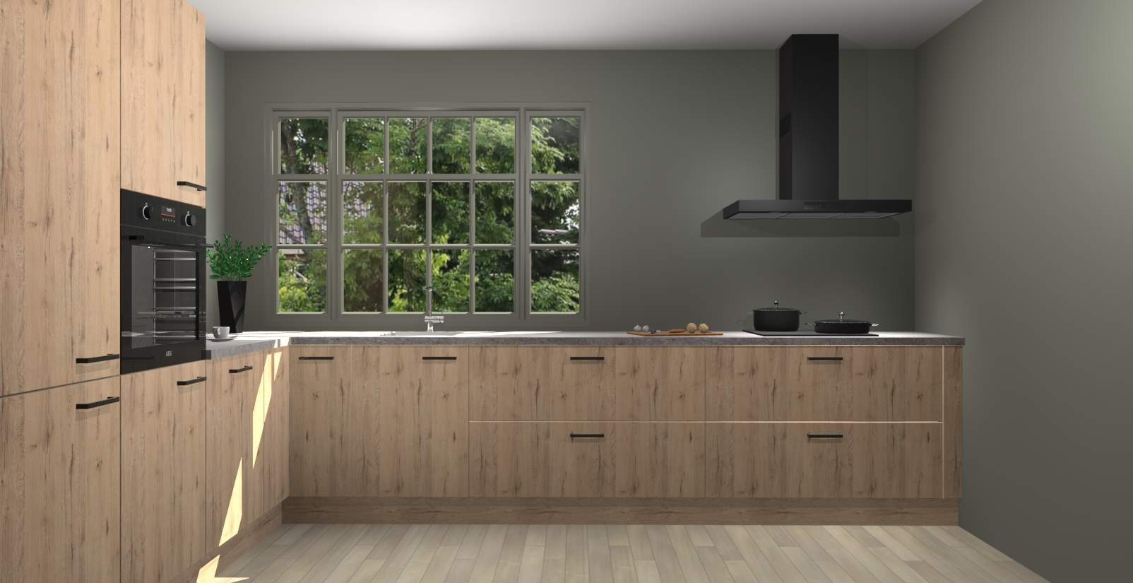 Kom dichtbij de perfecte keuken van uw dromen met de Madera Natuur keuken Malaga. Met een prachtige houtlook en eigentijds ontwerp, straalt deze keuken warmte en sfeer uit. Of u nu liefhebber bent van traditionele of moderne stijlen, er is genoeg ruimte om aan al uw behoeften te voldoen.