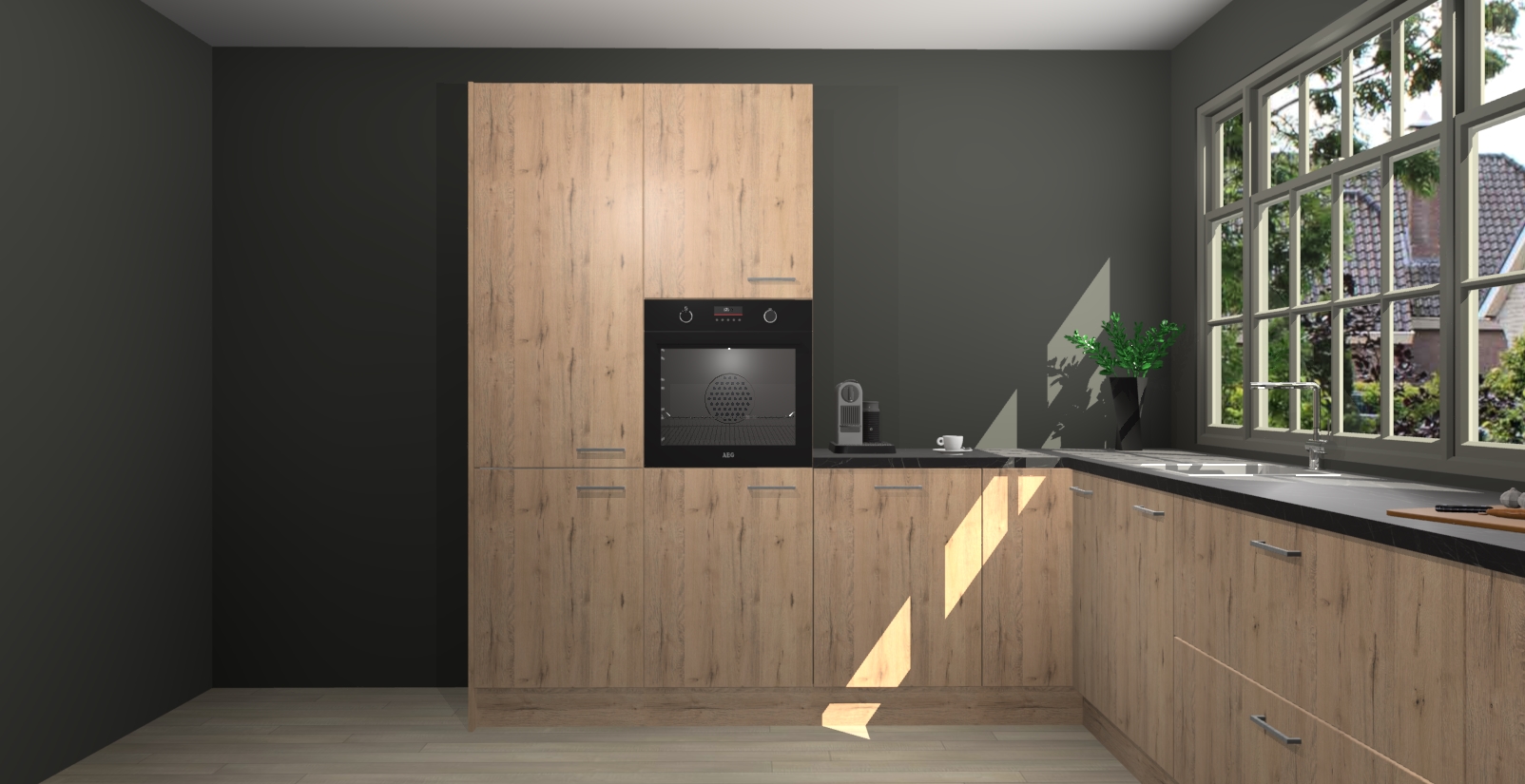 Kom dichtbij de perfecte keuken van uw dromen met de Madera Natuur keuken Malaga. Met een prachtige houtlook en eigentijds ontwerp, straalt deze keuken warmte en sfeer uit. Of u nu liefhebber bent van traditionele of moderne stijlen, er is genoeg ruimte om aan al uw behoeften te voldoen.