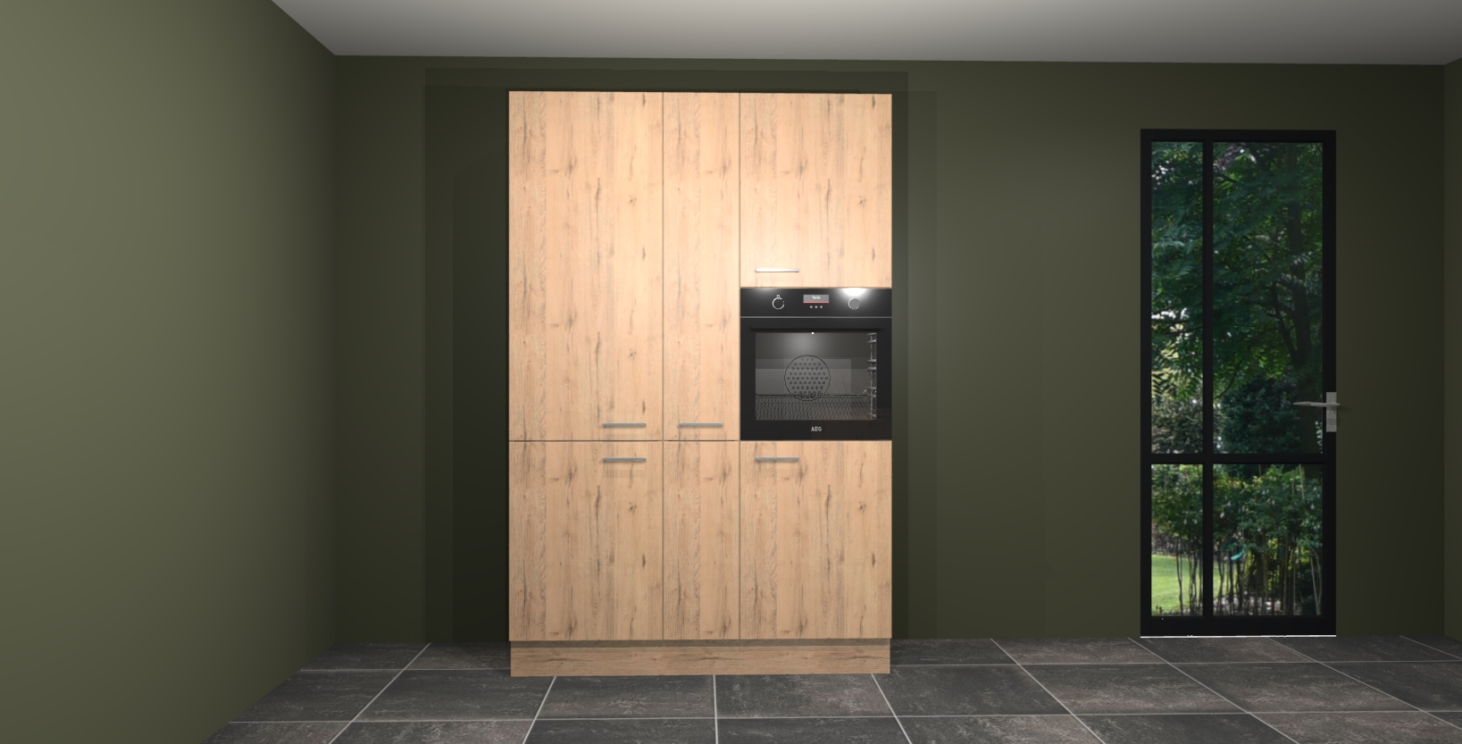 Met een modern, tijdloos design en ruime opslagruimte, zult u zich in no-time thuis voelen in uw nieuwe keuken. Uw leven wordt eenvoudiger met de soft-close deuren die voor het ultieme stille comfort zorgen - geen geluid dat u stoort terwijl u kookt. Ook is de keuken voorzien van 5 ingebouwde apparaten: een oven, inductie kookplaat, afzuigkap, vaatwasser en koelkast. Deze kunnen gemakkelijk na bestelling worden bijgewerkt naar AEG - waardoor uw luxe ervaring compleet is.