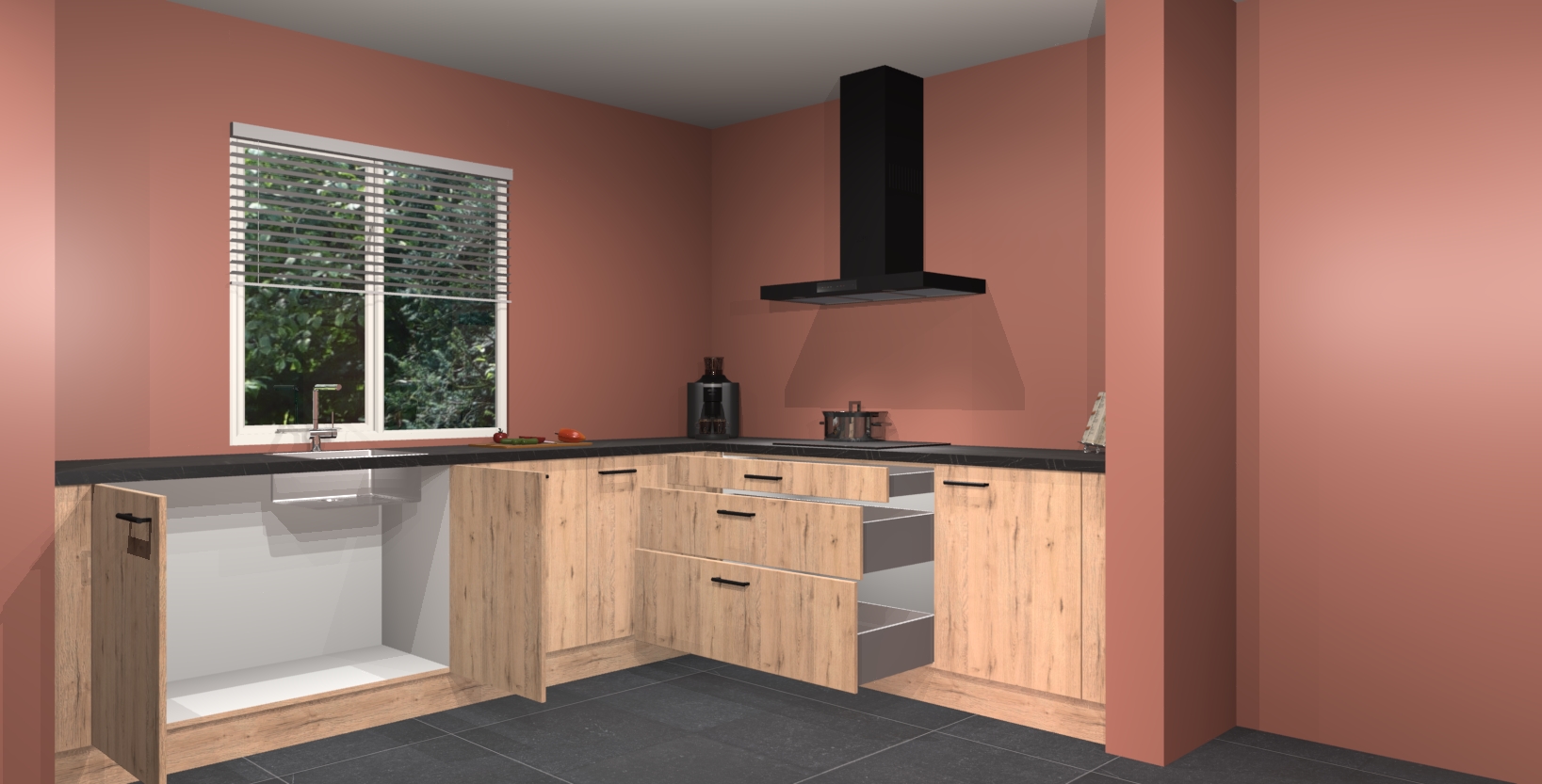 - Bij een hoekwerkblad zijn de hoeken in gevreesd en op maat gemaakt