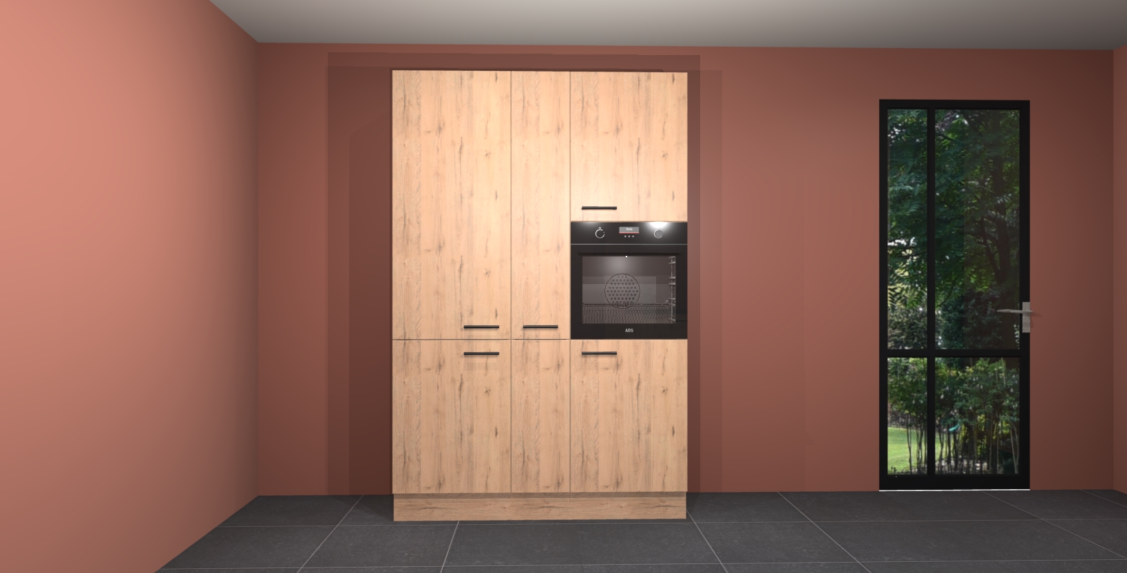 Met een modern, tijdloos design en ruime opslagruimte, zult u zich in no-time thuis voelen in uw nieuwe keuken. Uw leven wordt eenvoudiger met de soft-close deuren die voor het ultieme stille comfort zorgen - geen geluid dat u stoort terwijl u kookt. Ook is de keuken voorzien van 5 ingebouwde apparaten: een oven, inductie kookplaat, afzuigkap, vaatwasser en koelkast. Deze kunnen gemakkelijk na bestelling worden bijgewerkt naar AEG - waardoor uw luxe ervaring compleet is.