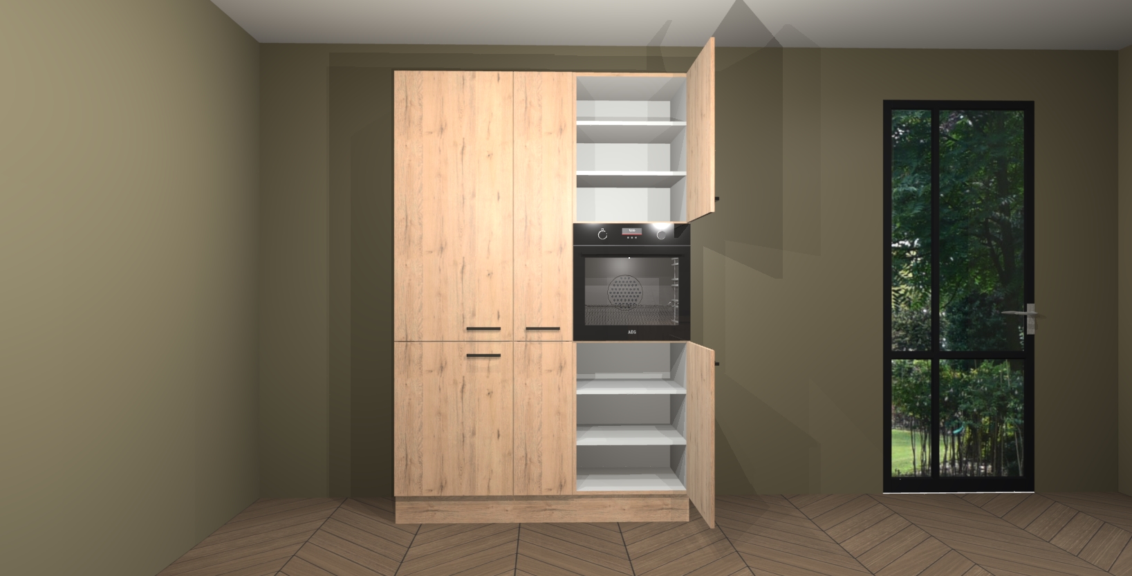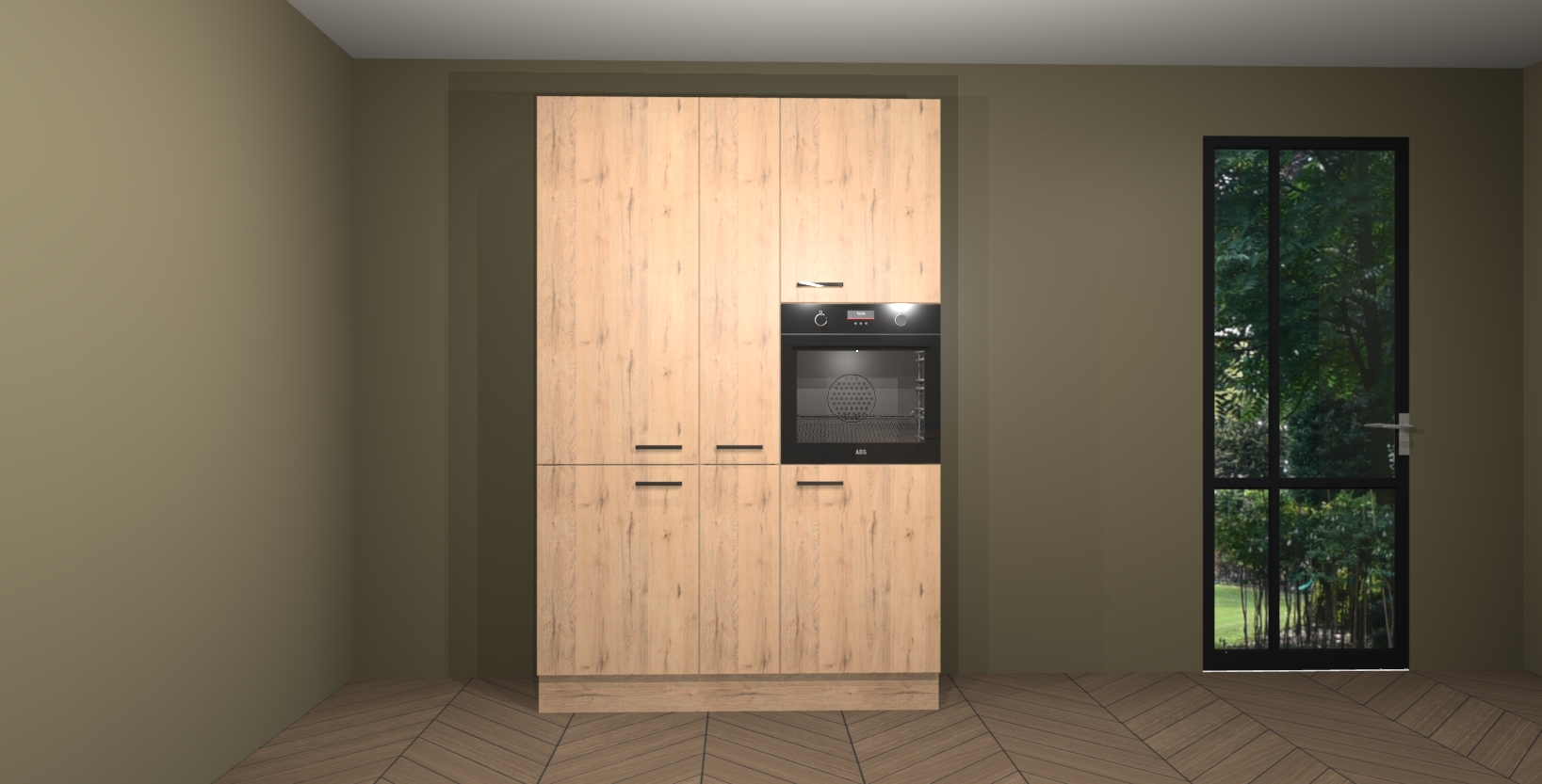 Met een modern, tijdloos design en ruime opslagruimte, zult u zich in no-time thuis voelen in uw nieuwe keuken. Uw leven wordt eenvoudiger met de soft-close deuren die voor het ultieme stille comfort zorgen - geen geluid dat u stoort terwijl u kookt. Ook is de keuken voorzien van 5 ingebouwde apparaten: een oven, inductie kookplaat, afzuigkap, vaatwasser en koelkast. Deze kunnen gemakkelijk na bestelling worden bijgewerkt naar AEG - waardoor uw luxe ervaring compleet is.