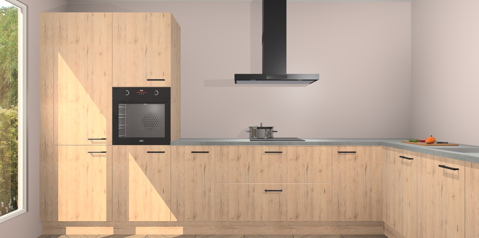 Met een modern, tijdloos design en ruime opslagruimte, zult u zich in no-time thuis voelen in uw nieuwe keuken. Uw leven wordt eenvoudiger met de soft-close deuren die voor het ultieme stille comfort zorgen - geen geluid dat u stoort terwijl u kookt. Ook is de keuken voorzien van 5 ingebouwde apparaten: een oven, inductie kookplaat, afzuigkap, vaatwasser en koelkast. Deze kunnen gemakkelijk na bestelling worden bijgewerkt naar AEG - waardoor uw luxe ervaring compleet is.