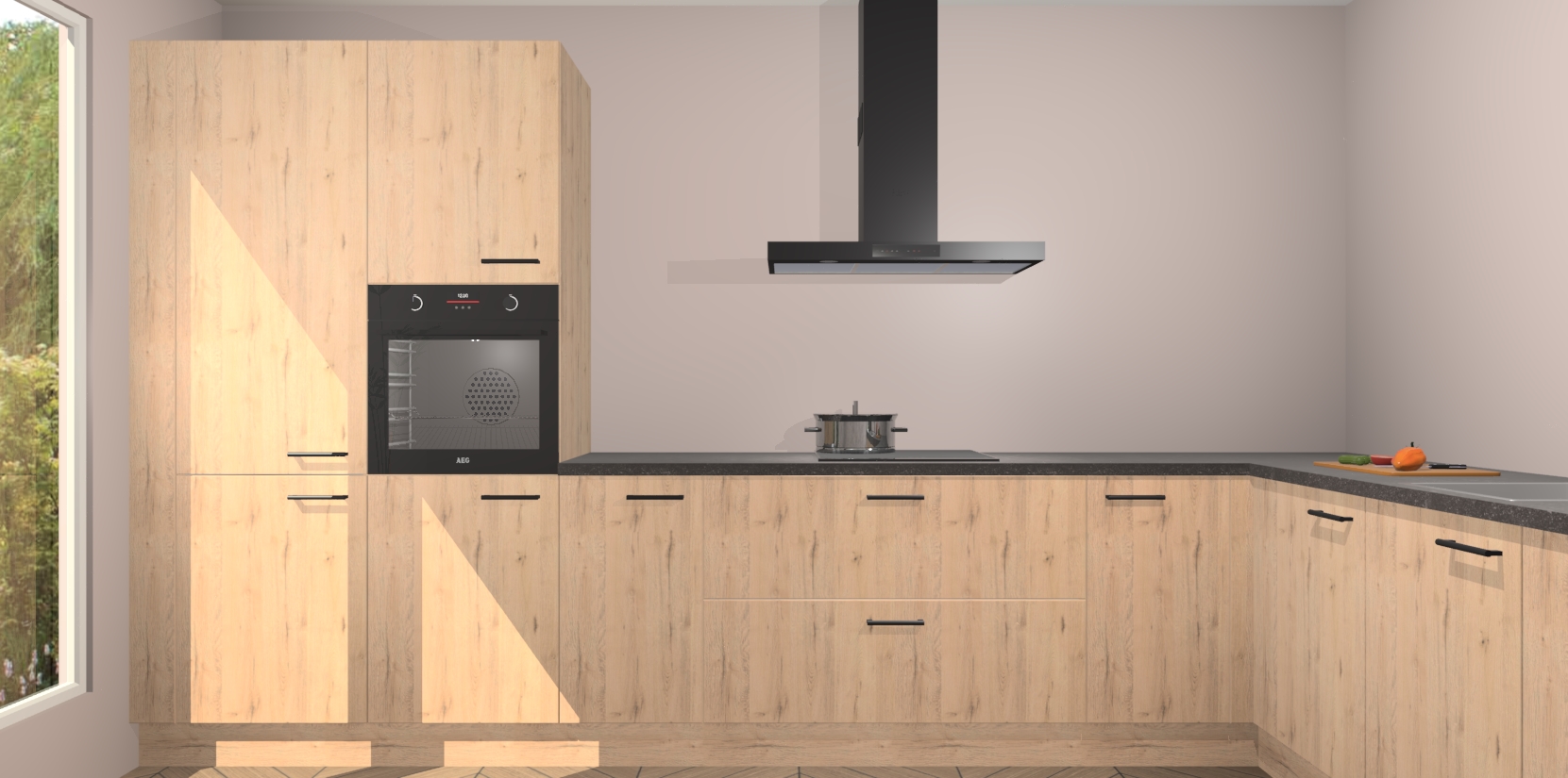 Met een modern, tijdloos design en ruime opslagruimte, zult u zich in no-time thuis voelen in uw nieuwe keuken. Uw leven wordt eenvoudiger met de soft-close deuren die voor het ultieme stille comfort zorgen - geen geluid dat u stoort terwijl u kookt. Ook is de keuken voorzien van 5 ingebouwde apparaten: een oven, inductie kookplaat, afzuigkap, vaatwasser en koelkast. Deze kunnen gemakkelijk na bestelling worden bijgewerkt naar AEG - waardoor uw luxe ervaring compleet is.